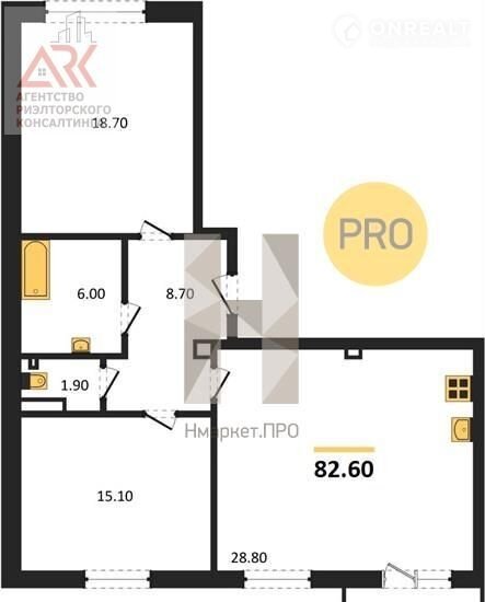 Общая площадь 82.6 м2
