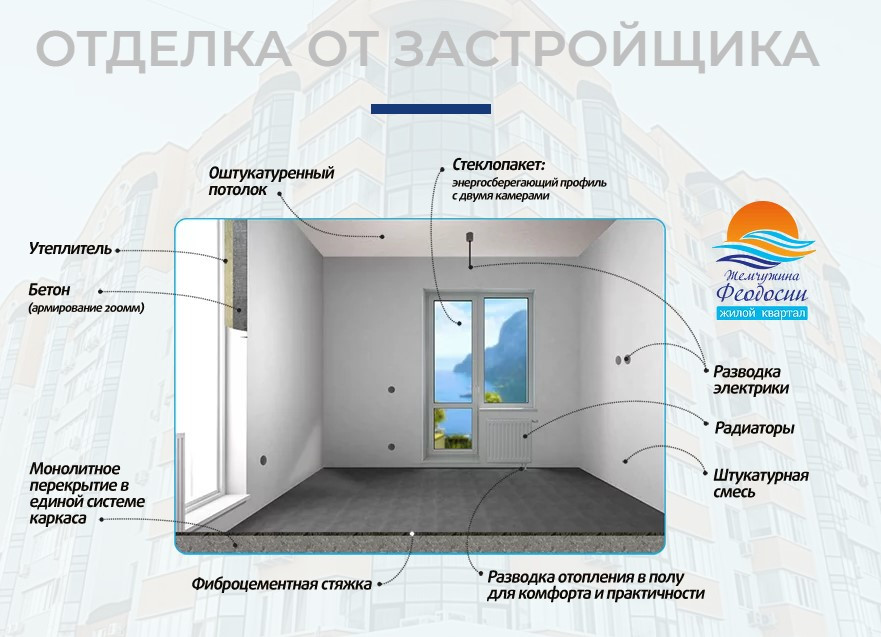 1 ком. квартира в новострое (секция сдана в 2021 г.) ЖК "Жемчужина Феодосии". Отличный район, 10 минутная пешая доступность к центру города, набережной и пляжу. Закрытый комплекс со стоянкой во дворе, детской и спорт площадкой. Квартира в предчистовой отделке, которую можно сделать по своему вкусу и дизайну.