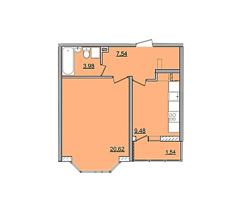 Общая площадь 40.5 м2