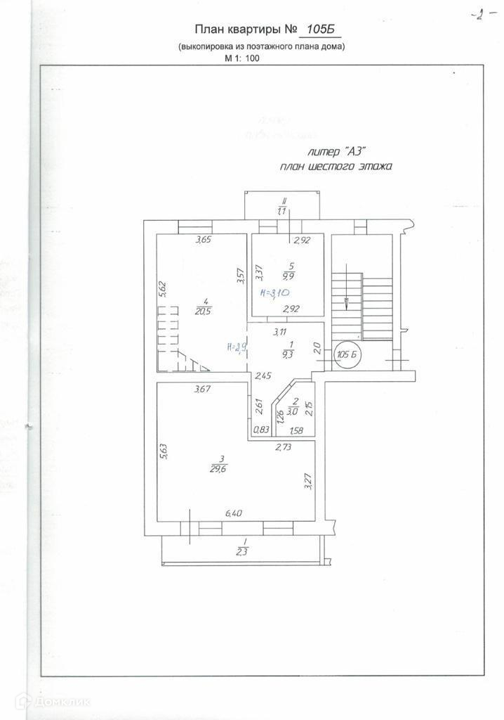 Высота потолков 3 метра.