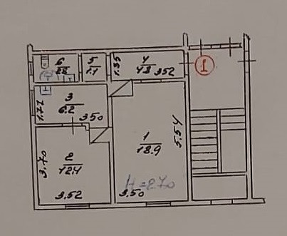 В квартире прихожая 4,8 кв.м, две просторные комнаты 18,9 и 12,4 кв.м, кухня 6,2 кв.м, совместный санузел с душевой кабиной.