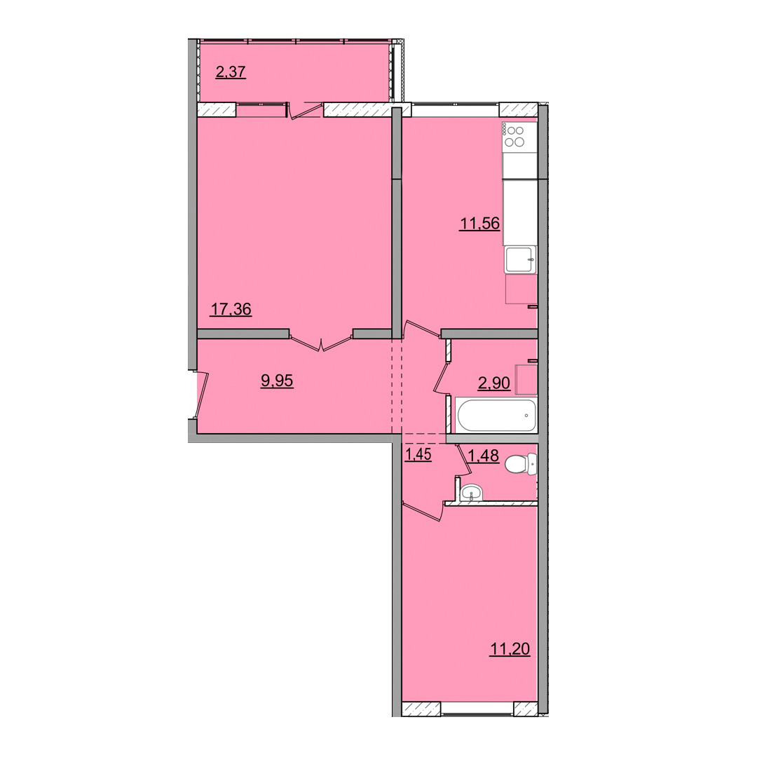 Общая площадь 58 м2