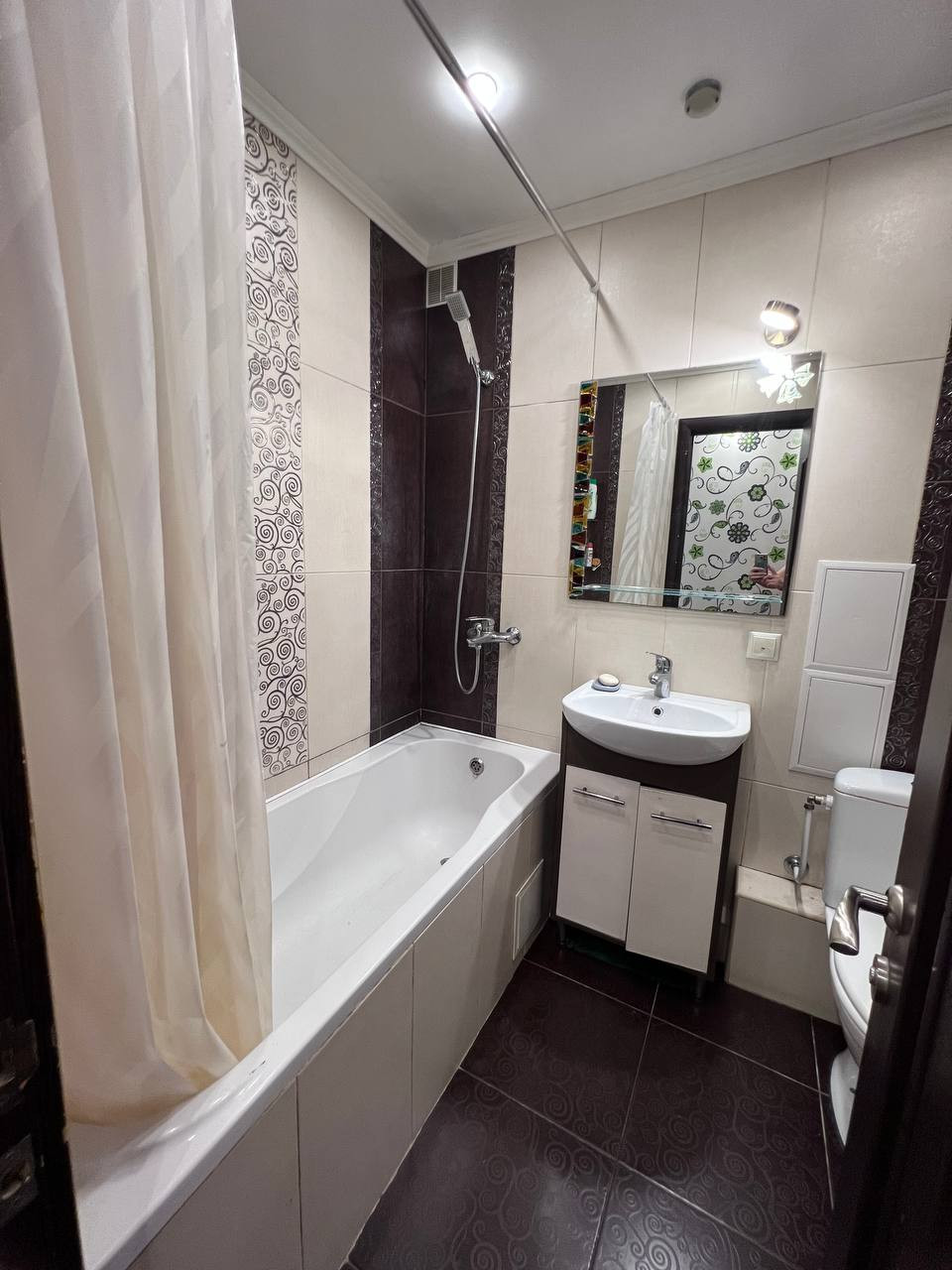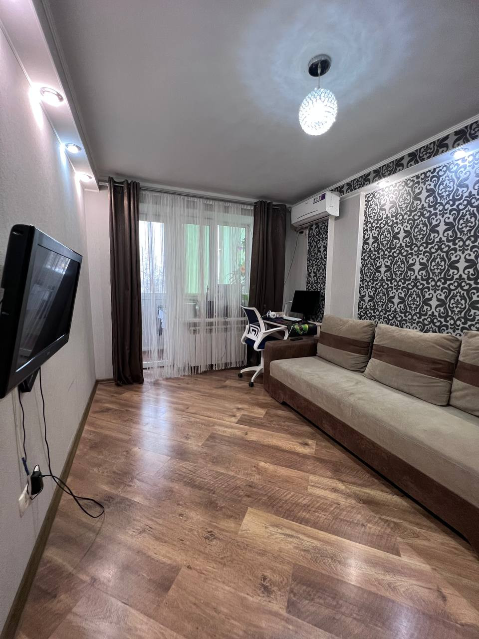 Квартира с хорошим ремонтом, в комнате установлен кондиционер, теплые полы в прихожей, ванной и на кухне