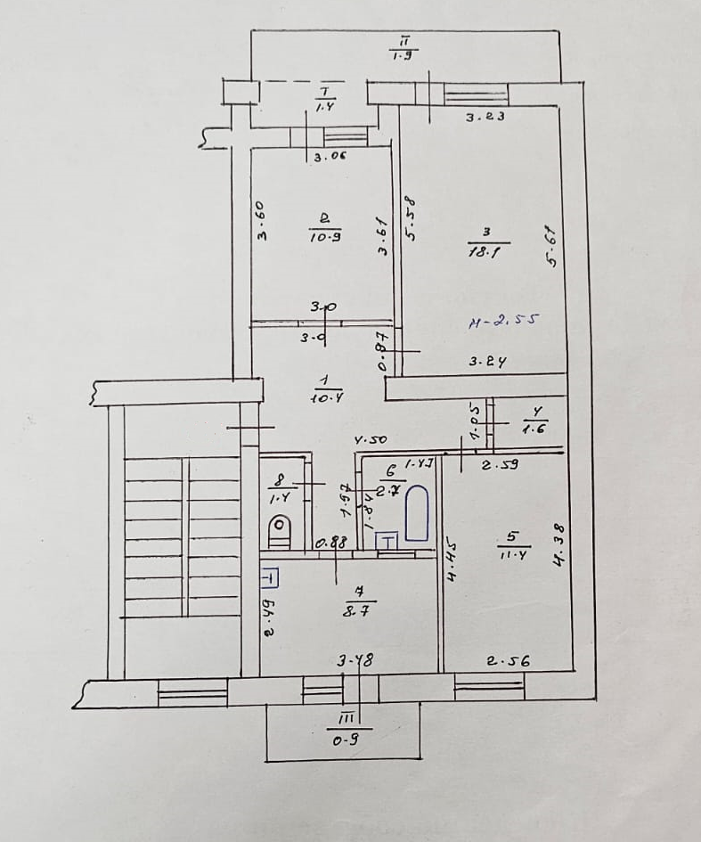 Высота потолков 2.5 м