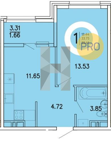 Общая площадь 35.4 м2