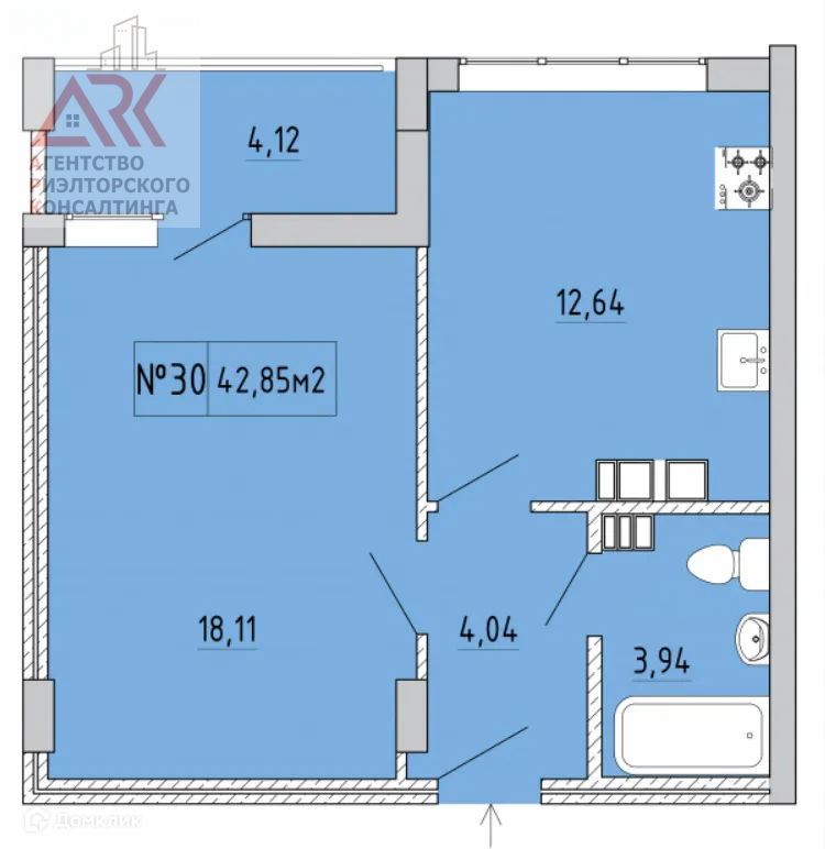 • Общая площадь: 42.85 м.кв.;