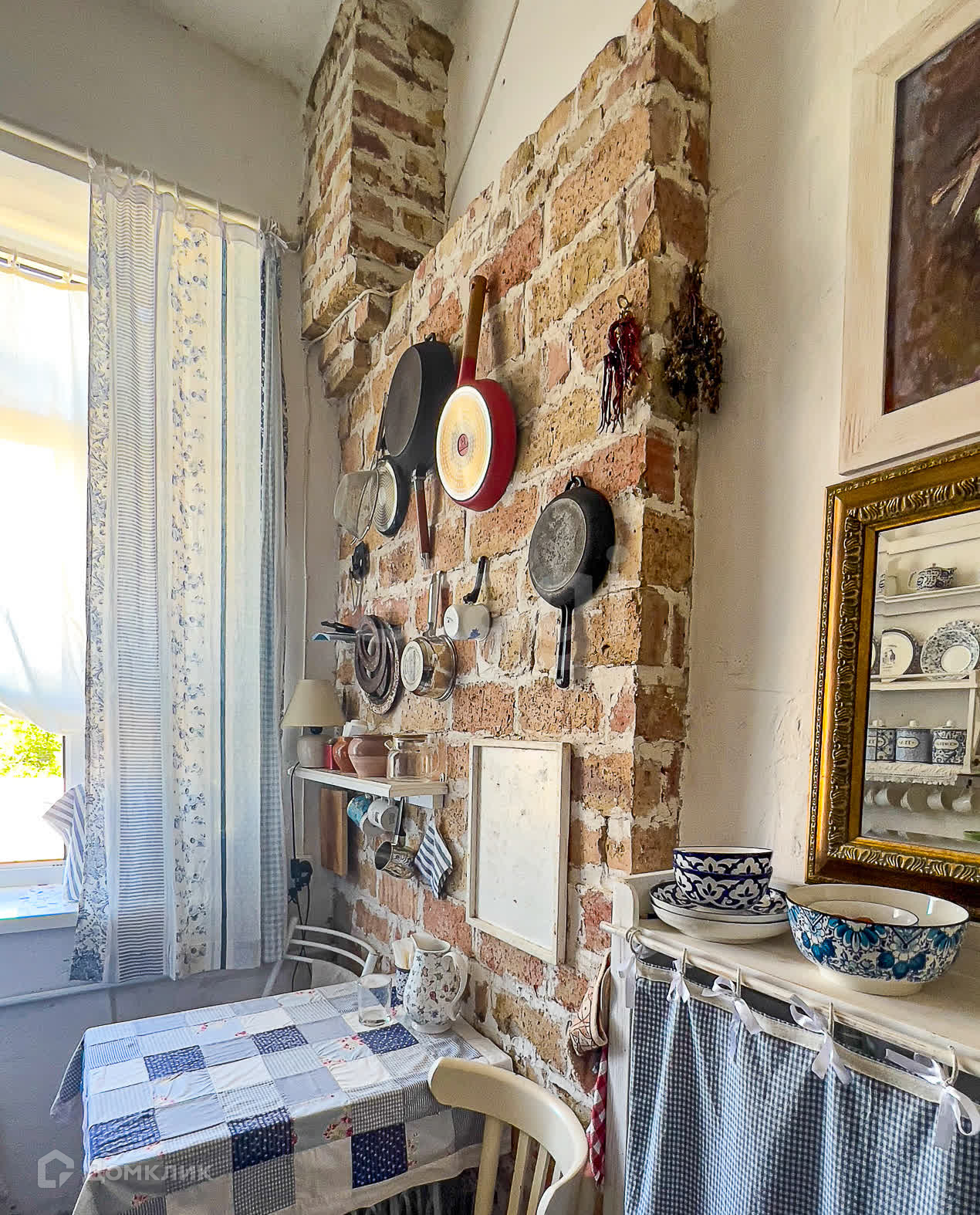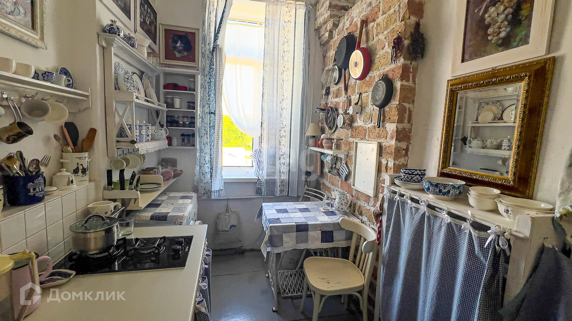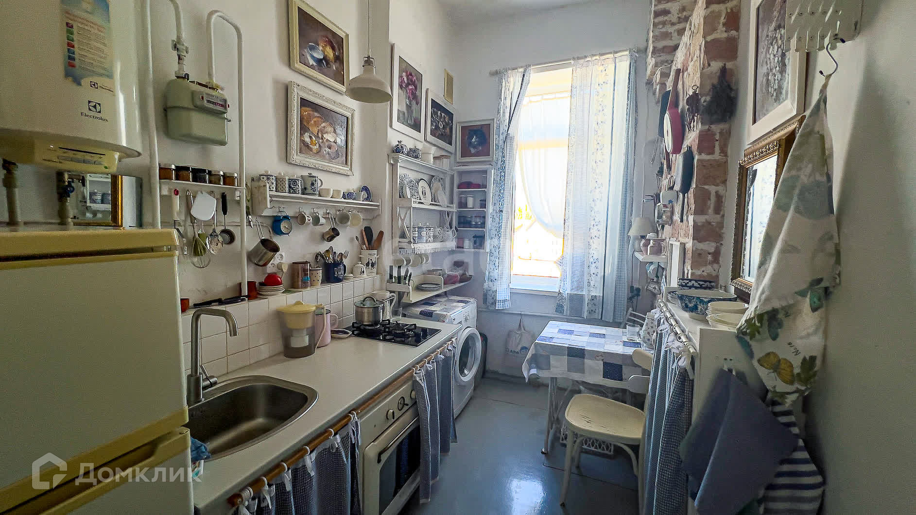 Кухня имеет площадь 5,9 квадратных метров. Из окон квартиры открывается шикарный вид на церковь 19 века. Также огромный плюс отсутствие высоких зданий перед окнами закрывающих вид.