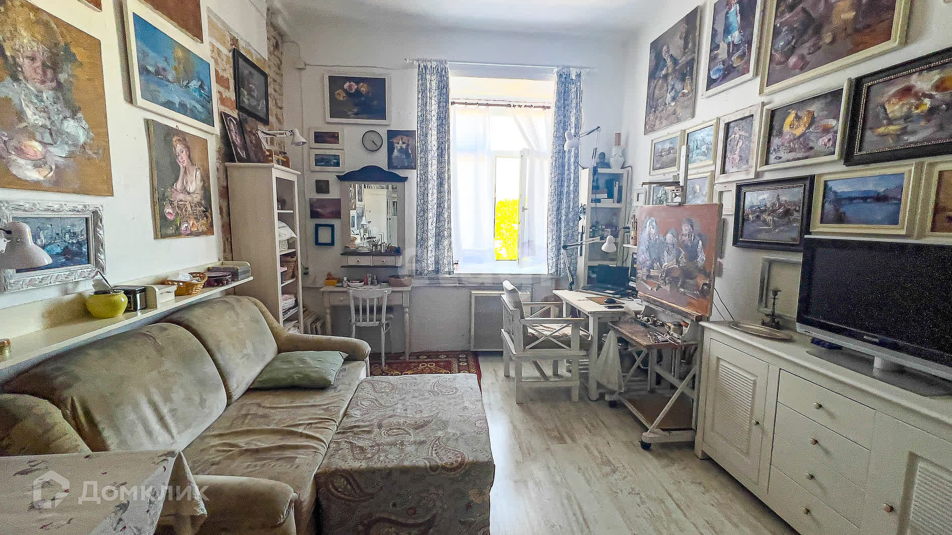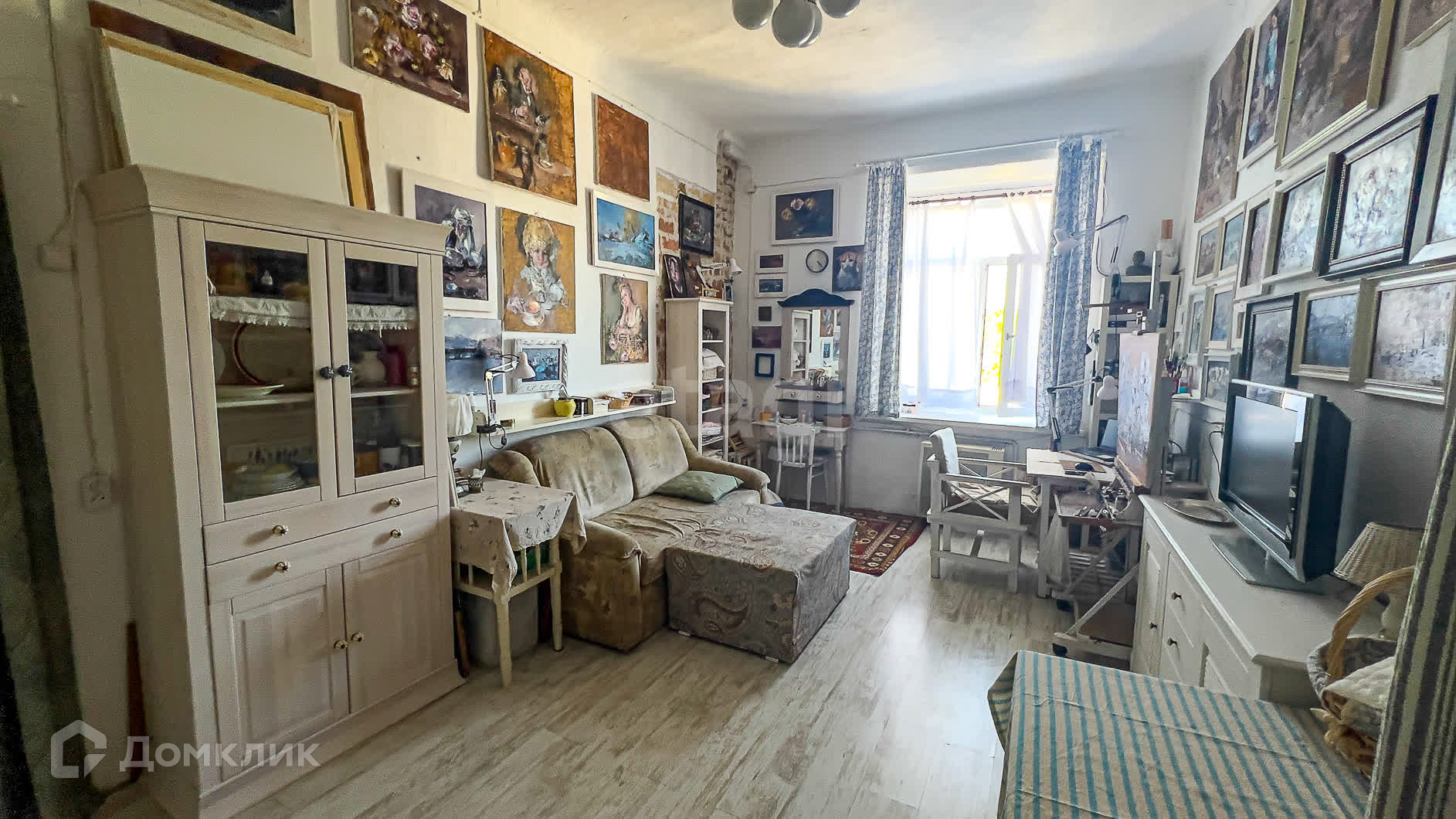 Комната площадью 19,8 светлая, уютная. Высокие потолки 3,5 м. Есть возможность установить натуральный камин.