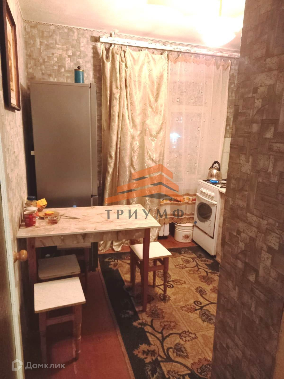 Квартира в жилом состоянии, большая комната, совмещенный санузел, кухня. Коммуникации все центральные: свет, вода, газ, отопление, на горячую воду - газовая колонка, интернет.