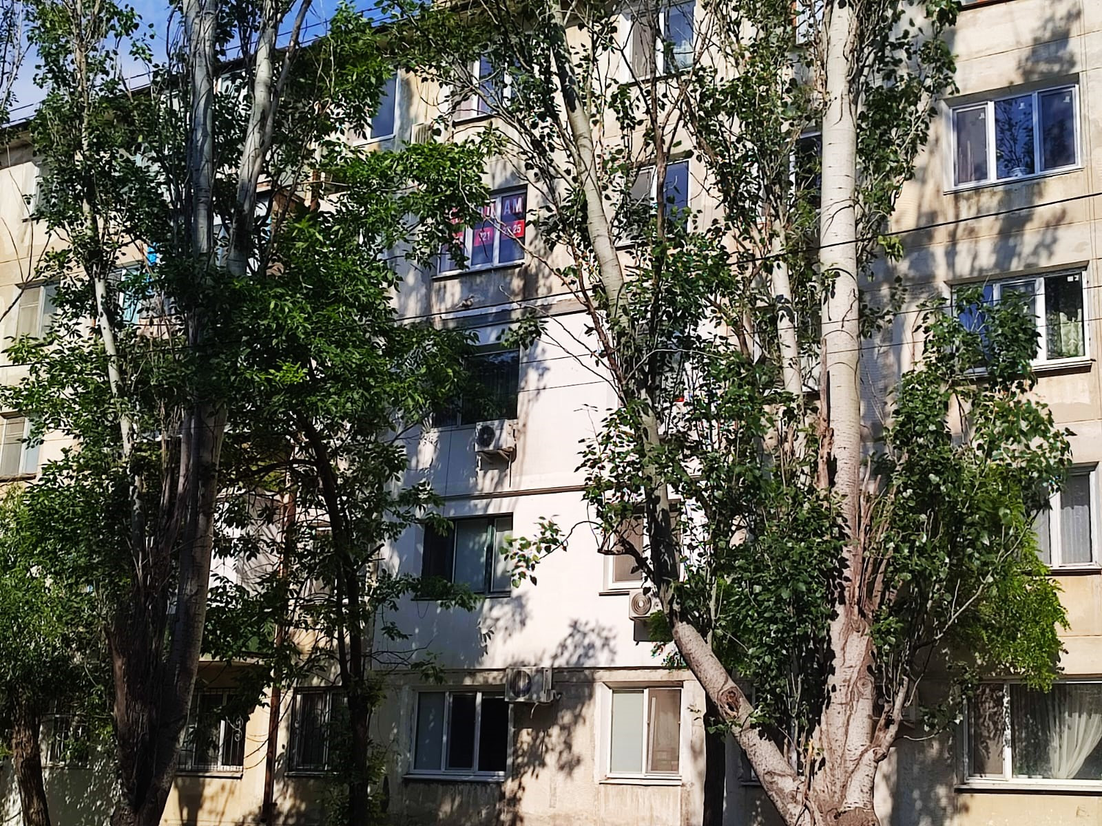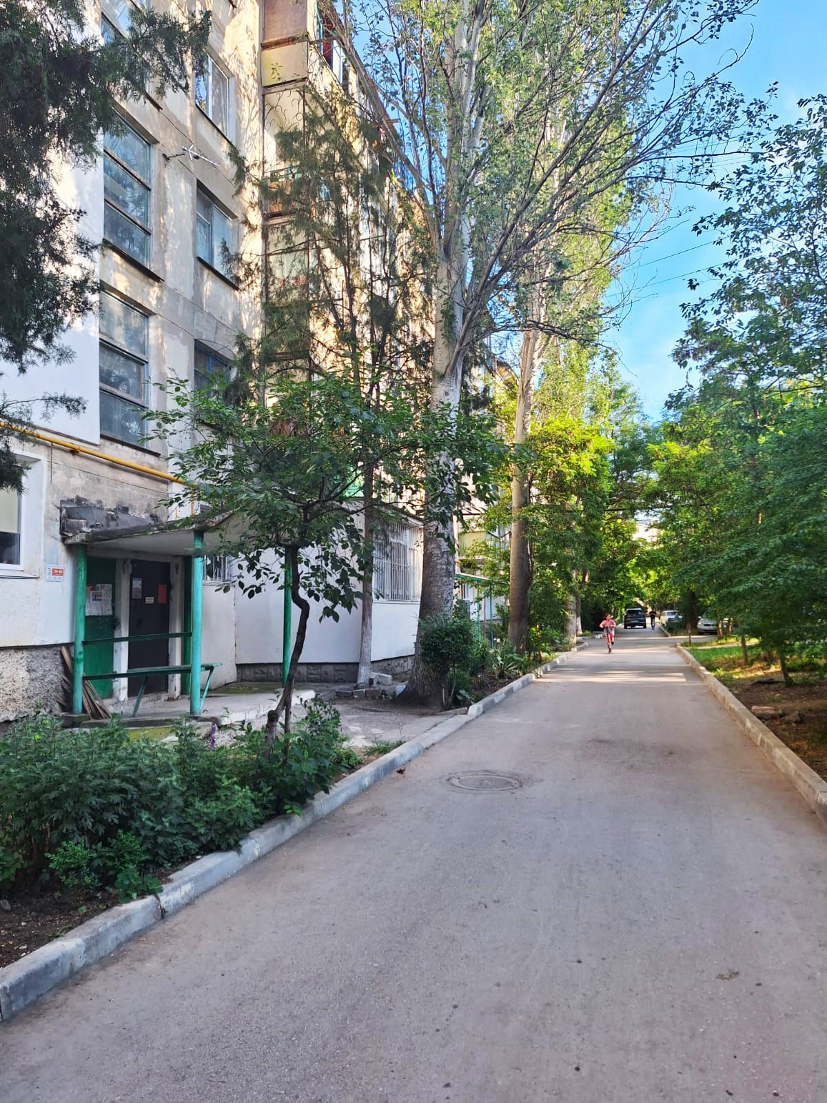 В пяти минутах от Крымского рынка, напротив школа и детский сад.