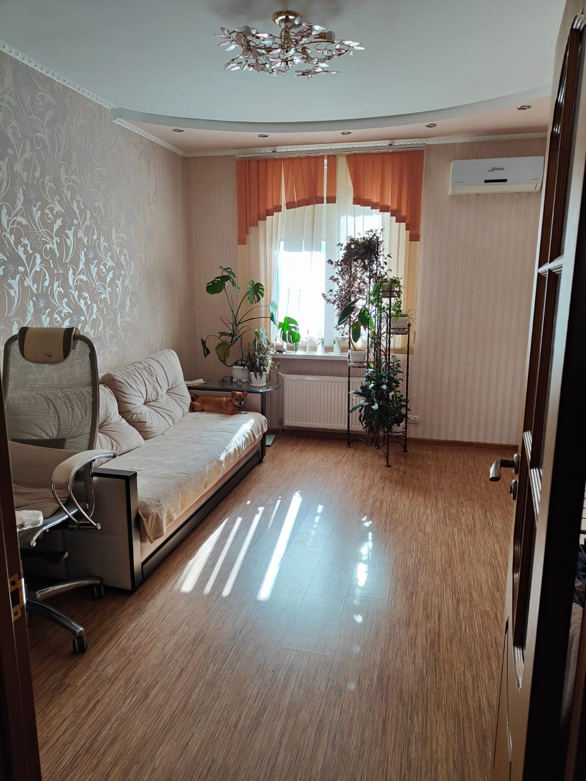 Продается двухкомнатная, теплая, сухая и светлая квартира на 3-м этаже.  В ней установлено автономное отопление, 2 кондиционера, двойные бронированные двери.