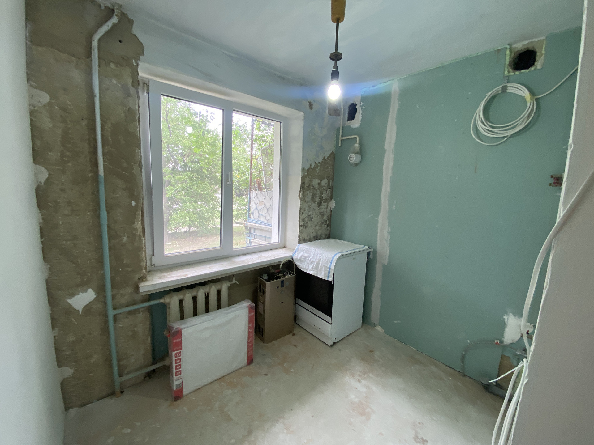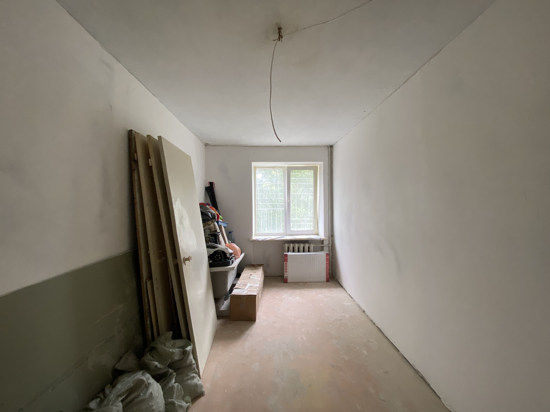 Состояние квартиры под чистовую отделку: стены выровнены, оштукатурены, заменена проводка, окна металлопластиковые, новые батареи, полы замены не требуют (крепкие, ни где не играют).
