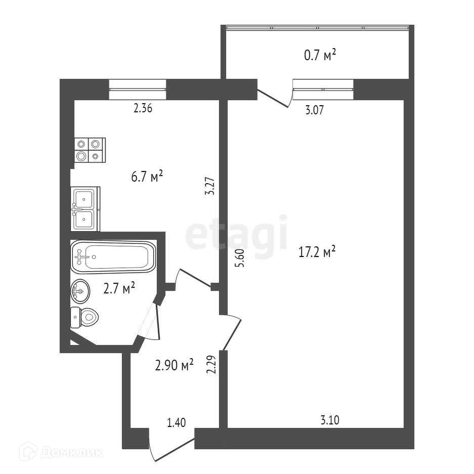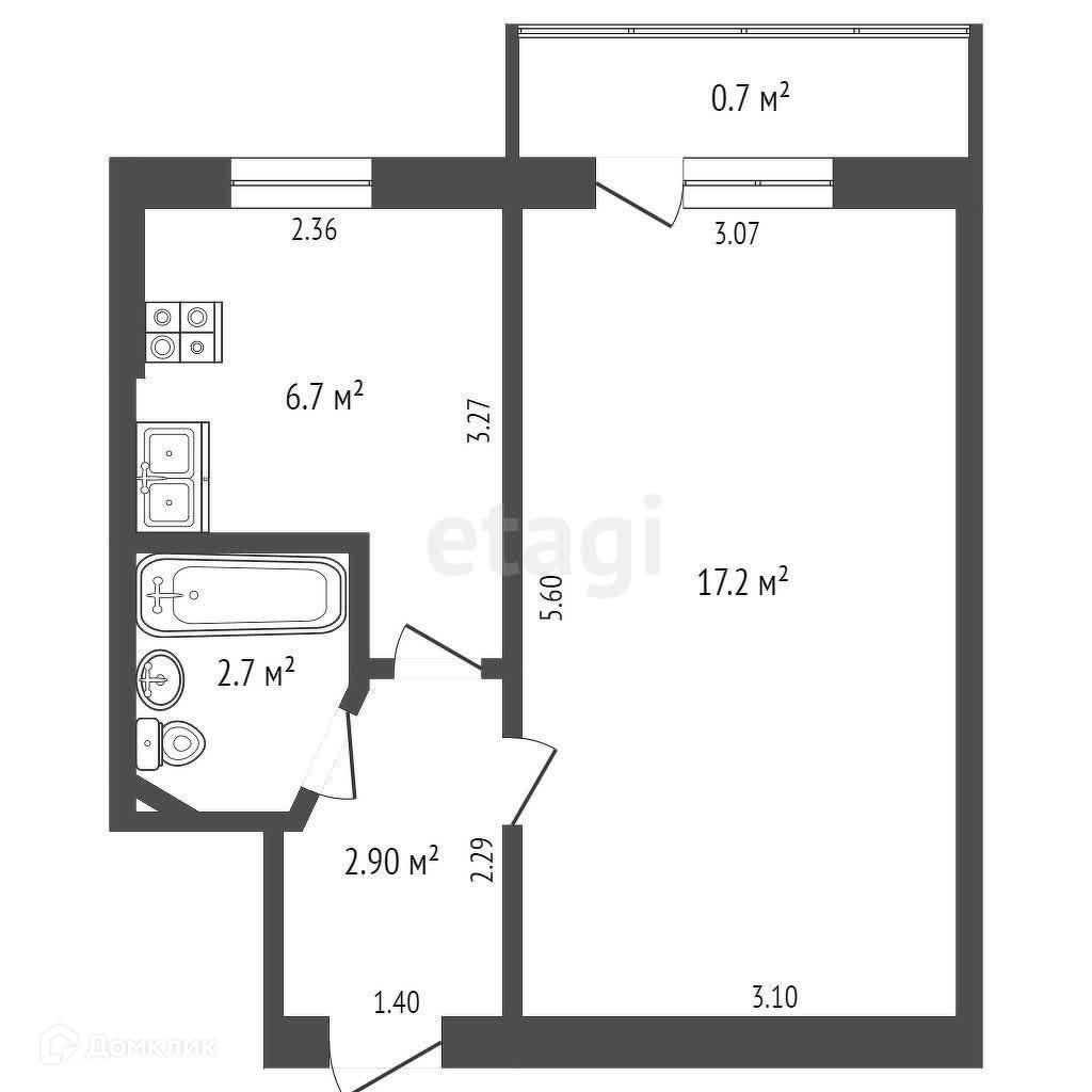 Просторная кухня (6,7 квадратных метра) станет отличным местом для приготовления вкусных блюд и семейных ужинов.