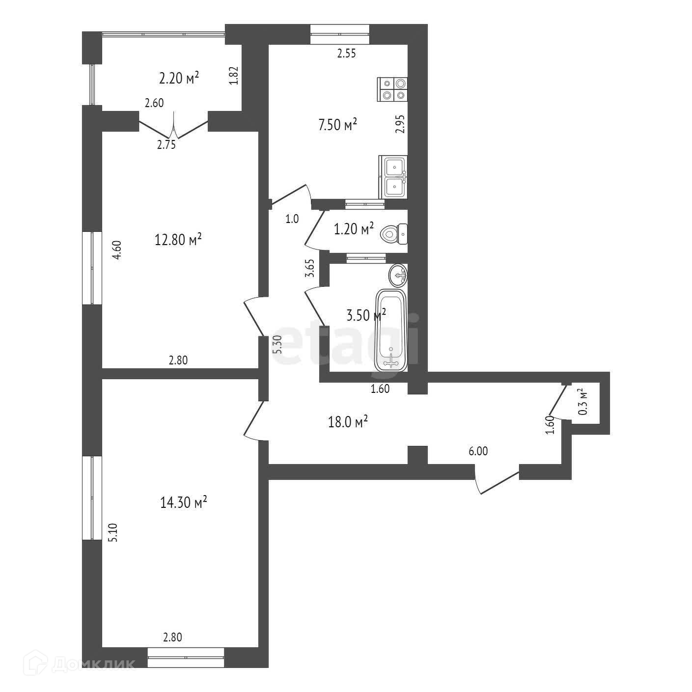 Общая площадь 41.9 м2