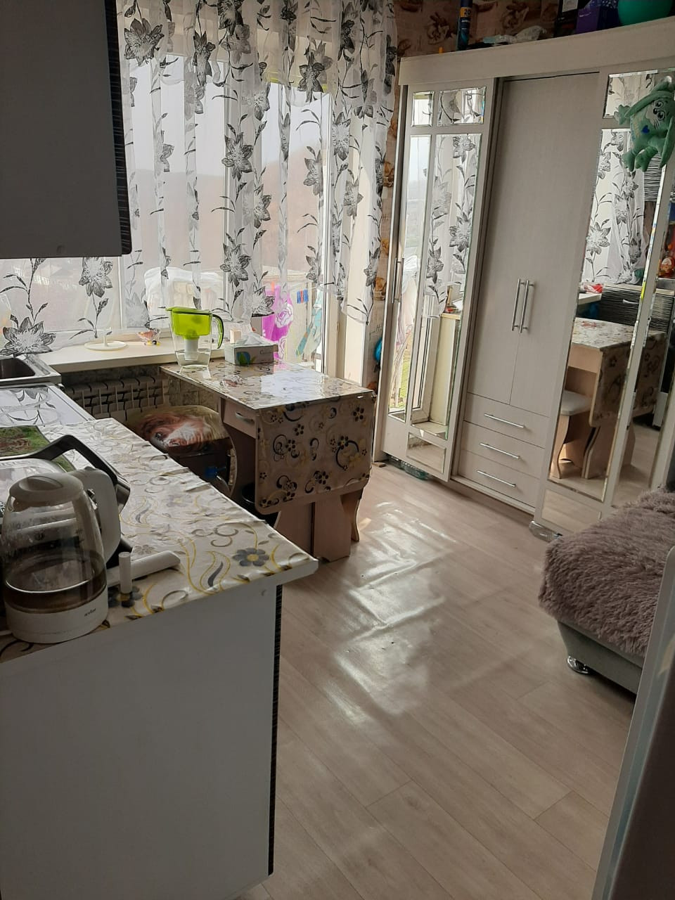 Квартира теплая, поменяны радиаторы, солнечная сторона. Лифт устанавливают, на фото вариант как можно расставить мебель и устроить комнаты, продажа без мебели, кондиционер можем оставить, дверь почти новая не дует, линолеум везде, в прихожей и возле балкона теплый пол, счетчик в квартире, на гвс и холодную воду счетчики, трубы везде новые пропилен, проводка поменяна, пластиковые окна и балконная дверь, межкомнатные двери поменяны.Торг!!!!