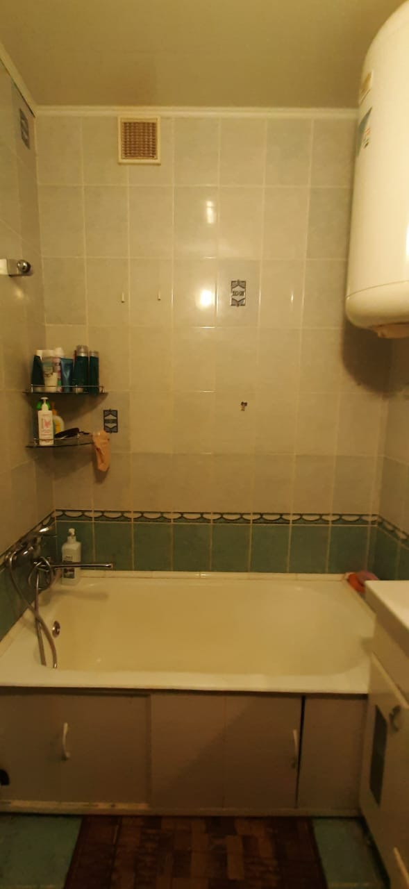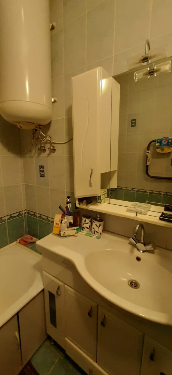 Санузел раздельный. Горячая вода, титан, ванна, раковина с тумбой.