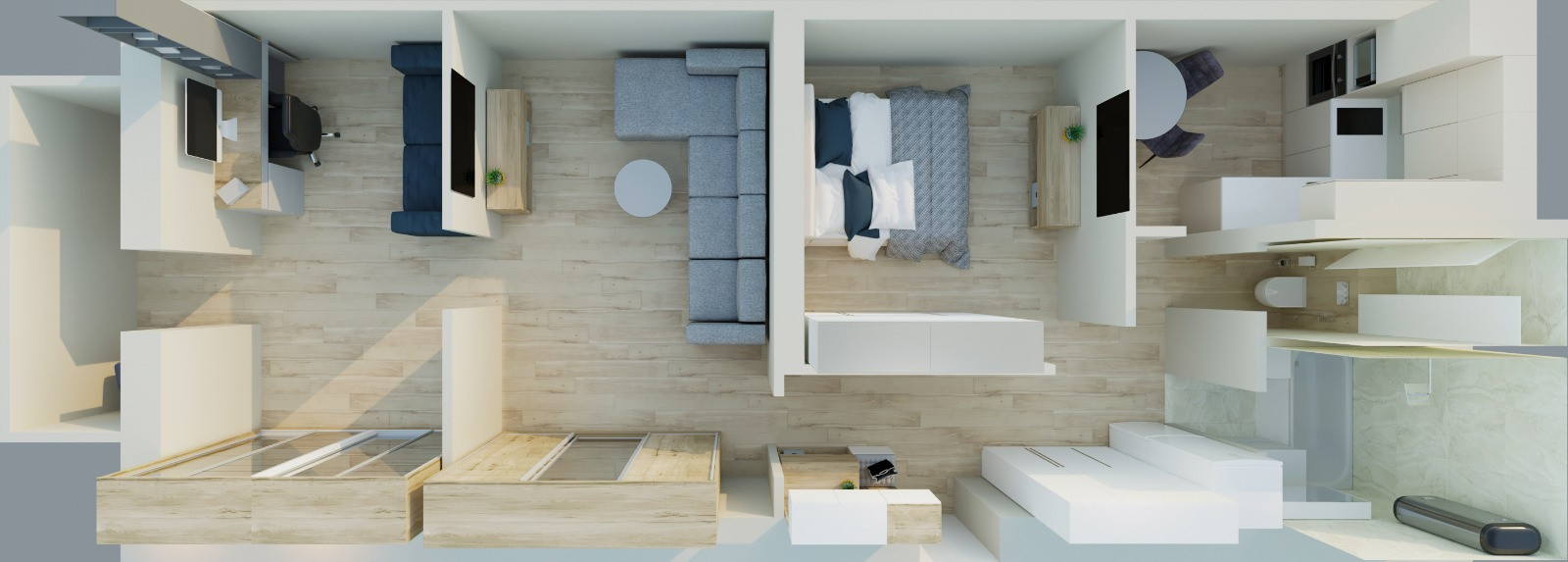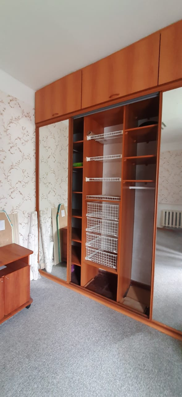 Два встроенных шкафа в комнатах, двери купе зеркальные, полки, выдвижные корзины и пр.