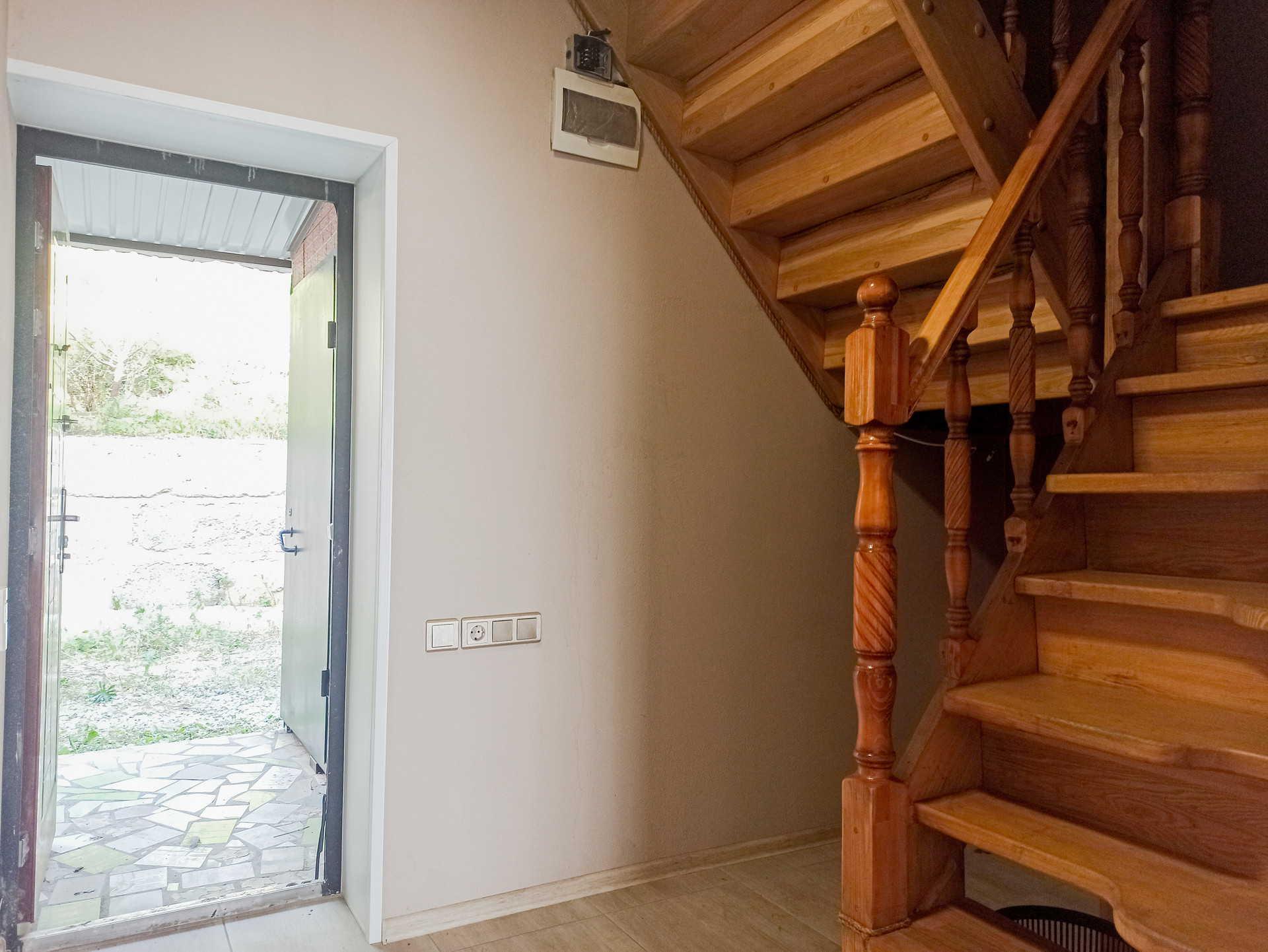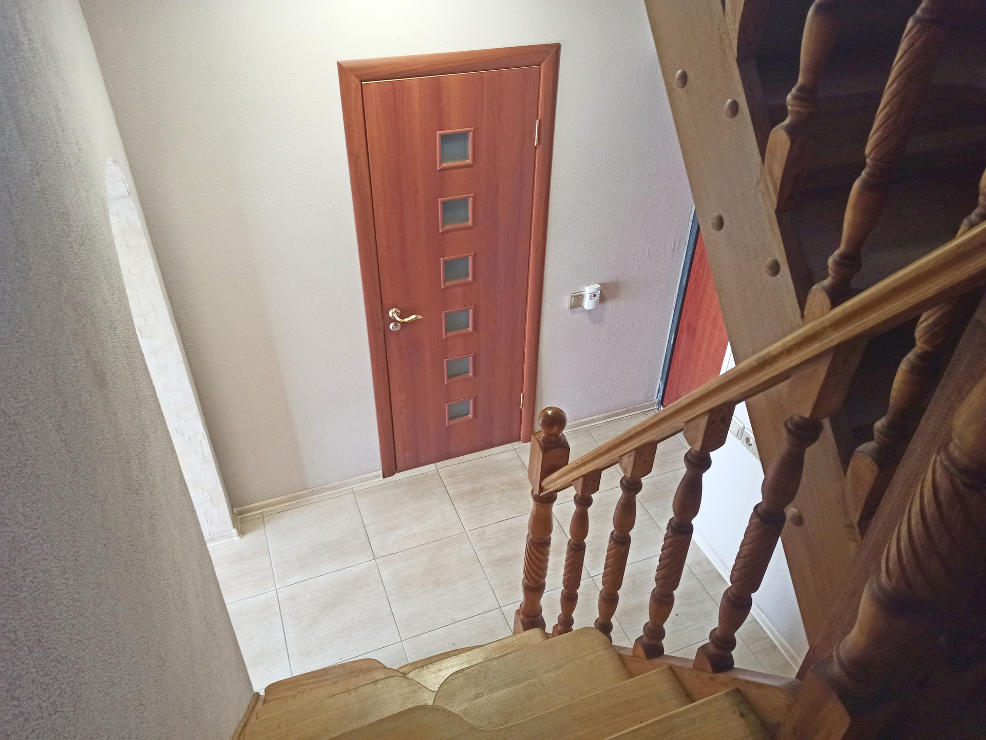 Пол на 1 этаже-керамогранит, 2,3 этажи-ламинат.