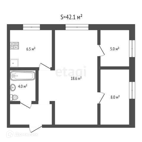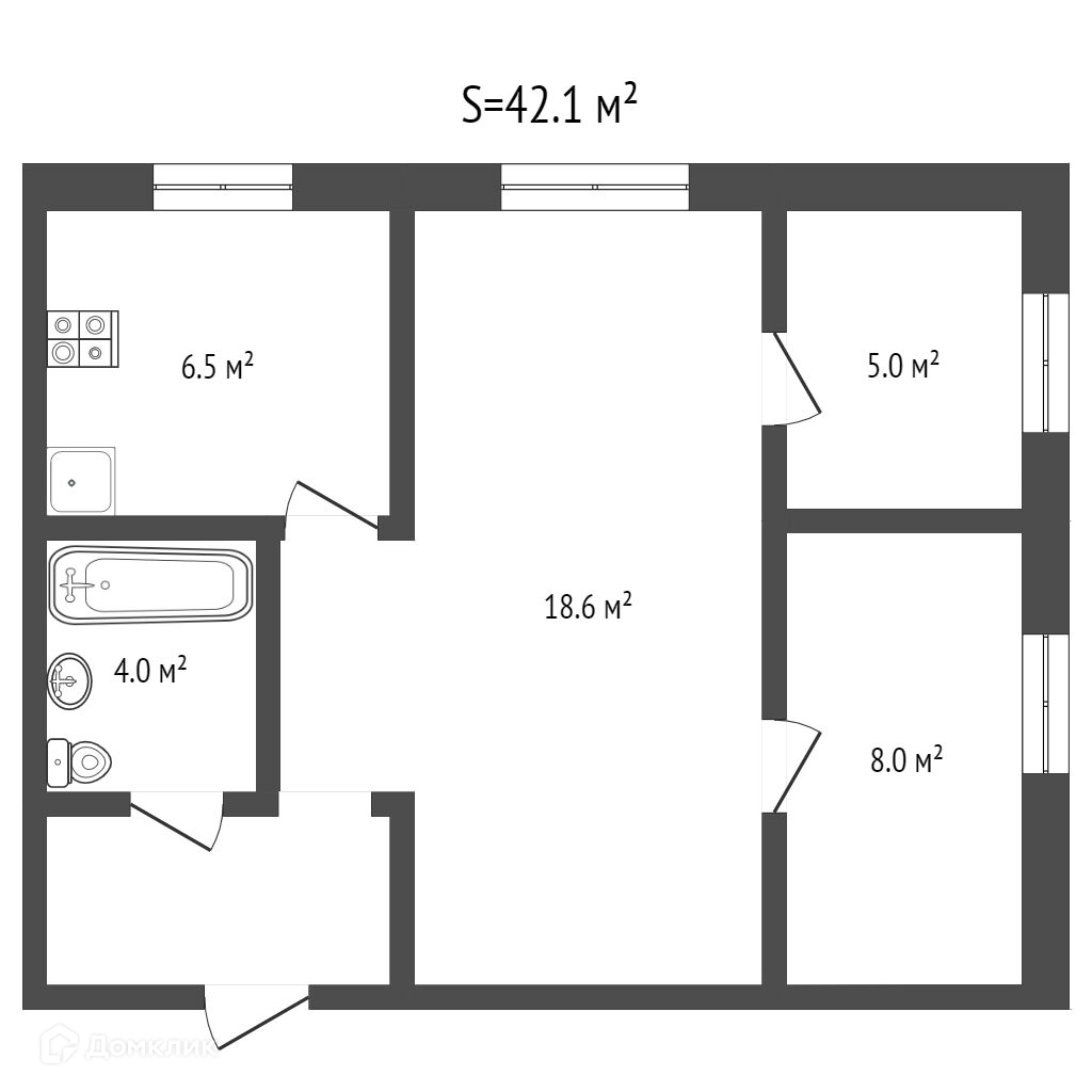 Общая площадь 42.1 м2