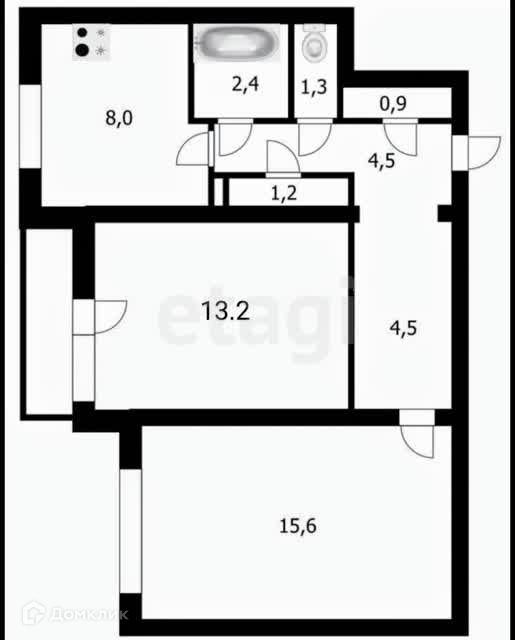 • Общая площадь: 51.6 м²