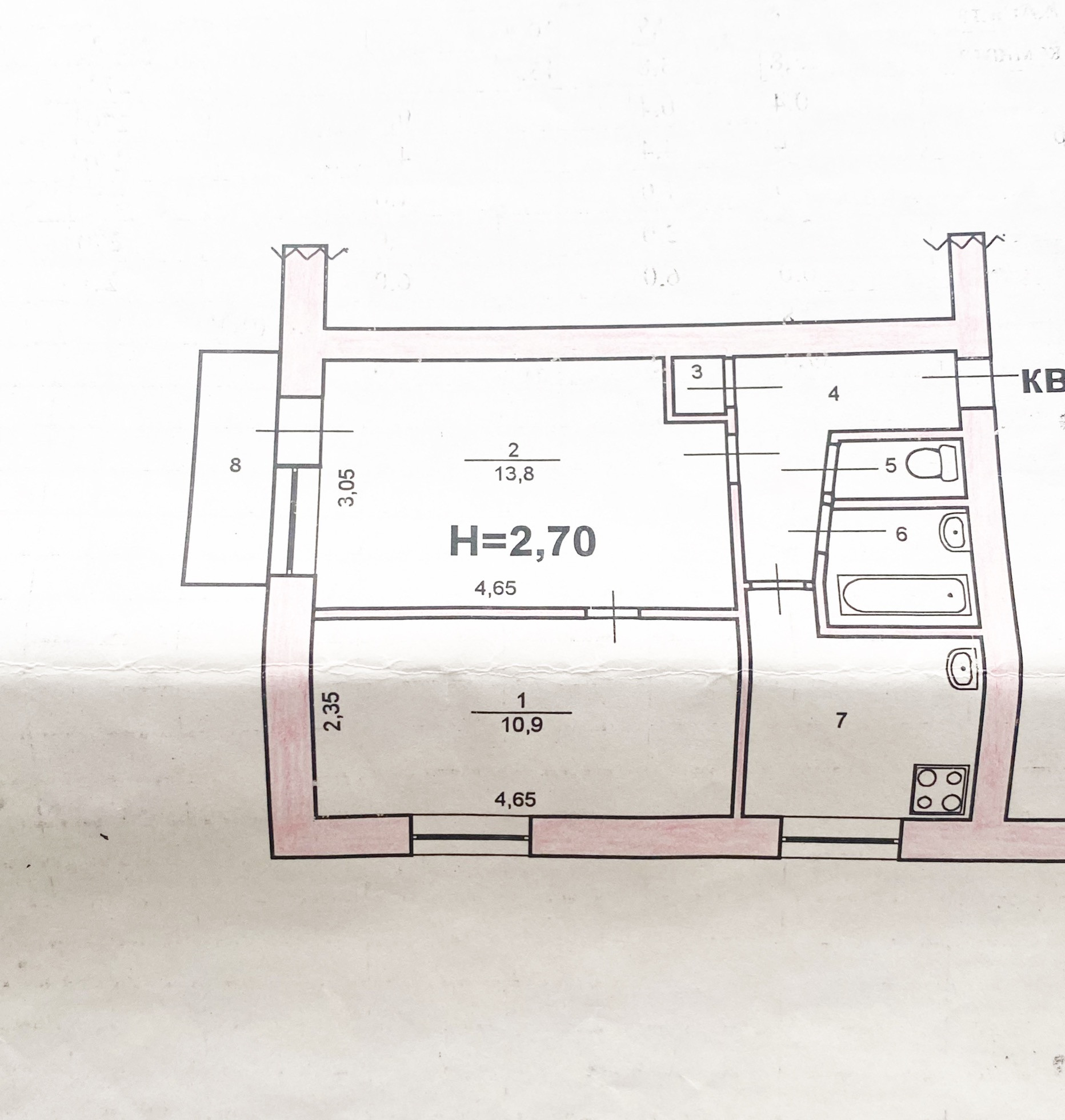 Общая площадь 39 м2