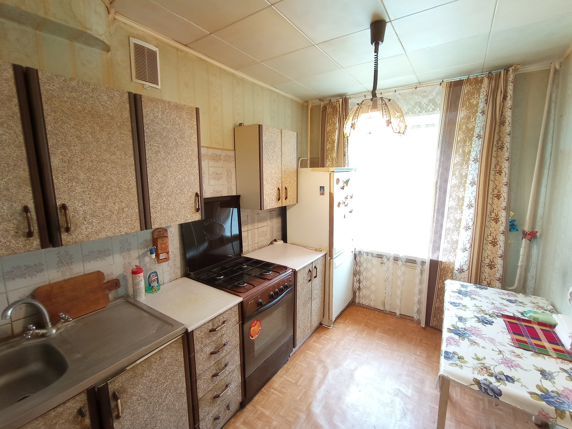 Общая площадь 59,7 кв.м. + лоджия 8,4 кв.м. Все комнаты изолированные: 18 + 13,5 + 9,2 кв.м. Кухня 7,5 кв.м. Санузел раздельный, полы паркет (в коридоре и на кухне линолеум), окна пластиковые стеклопакеты, есть вместительная гардеробная в гостиной и кладовка в коридоре.