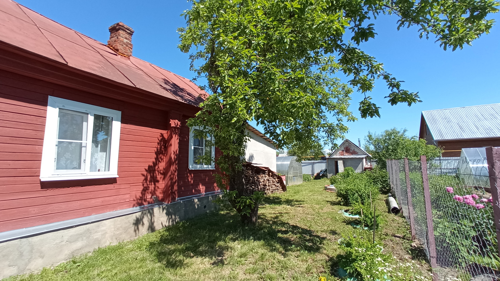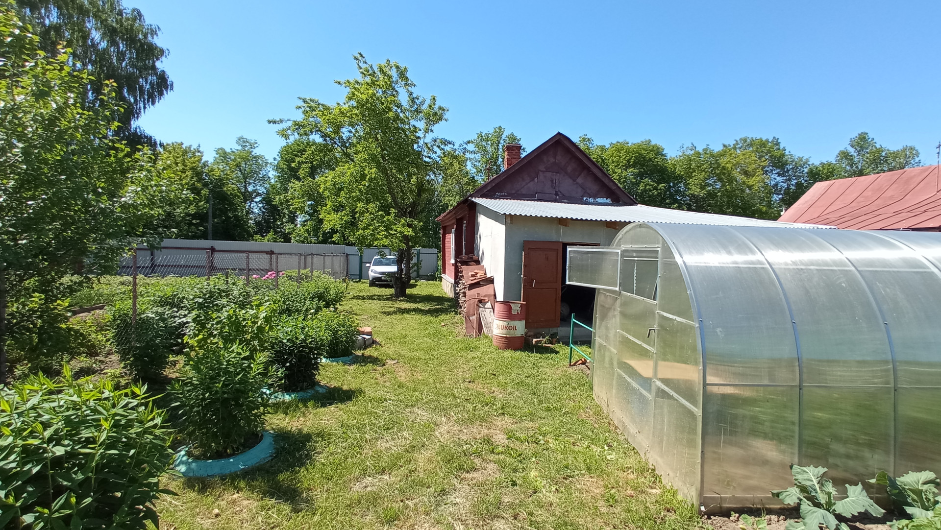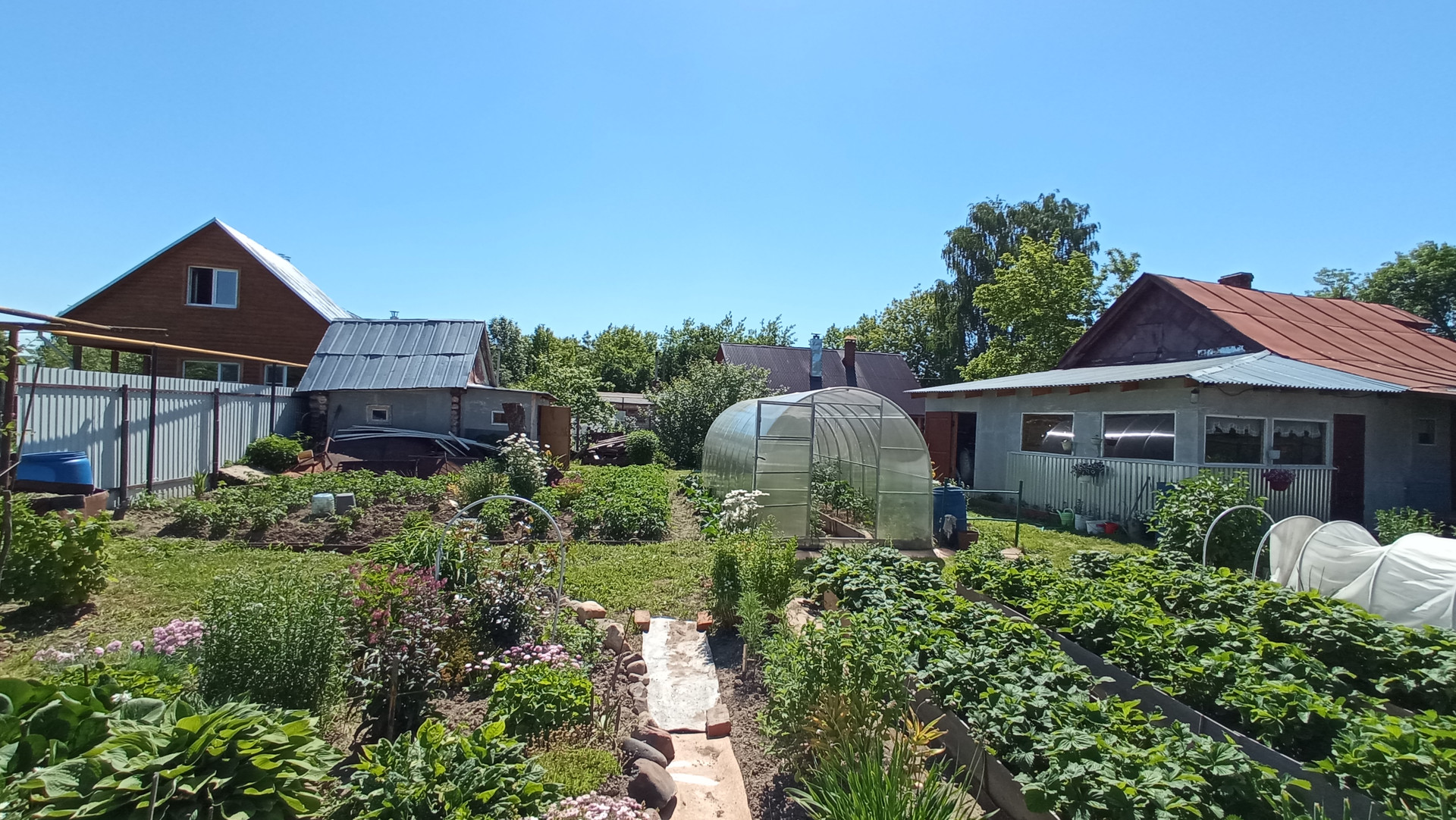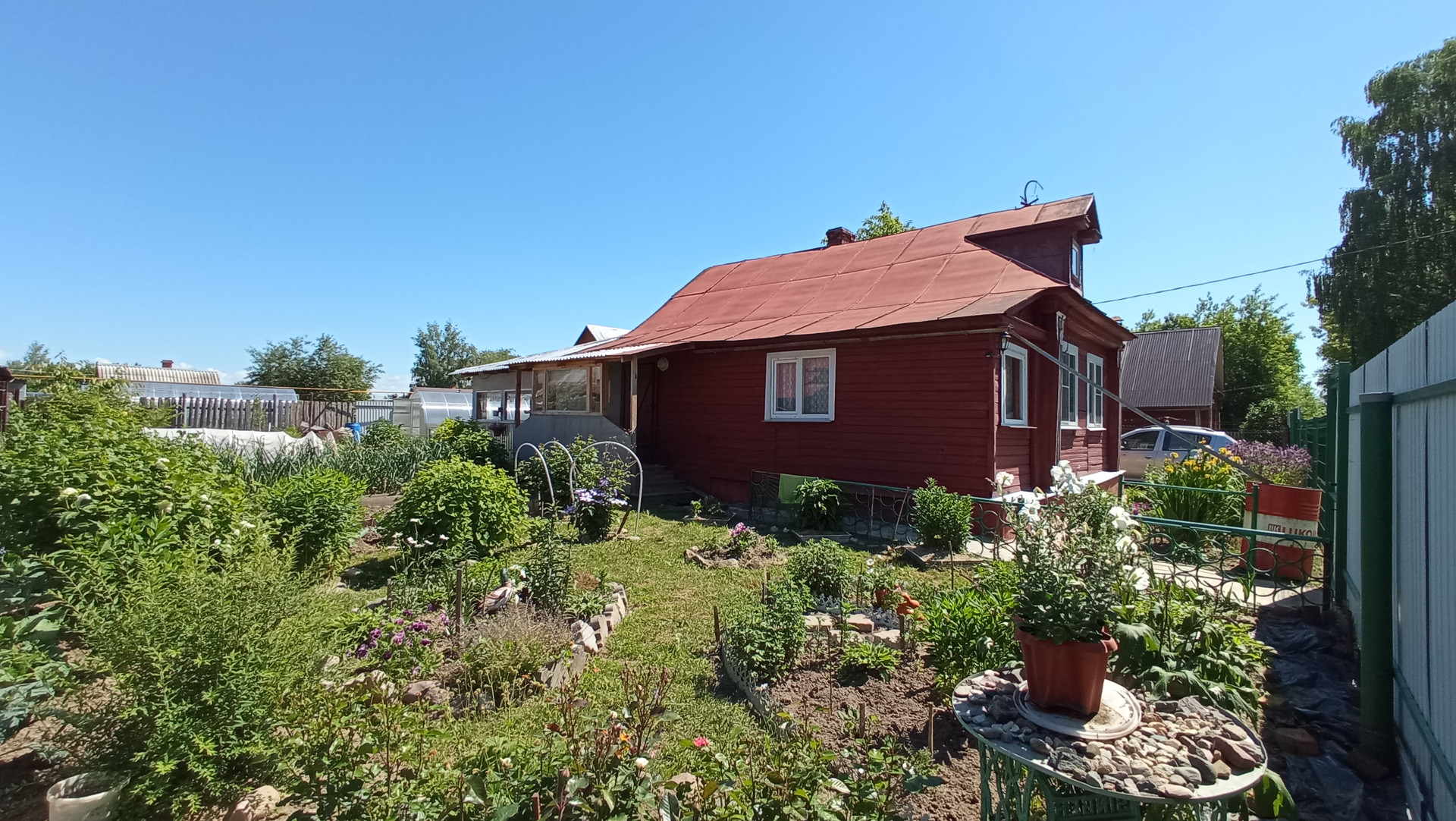 * Земельный участок ухоженный, сухой и ровный. На участке клумбы, теплица, фруктовые насаждения, грядки, зеленая зона для отдыха и барбекю.