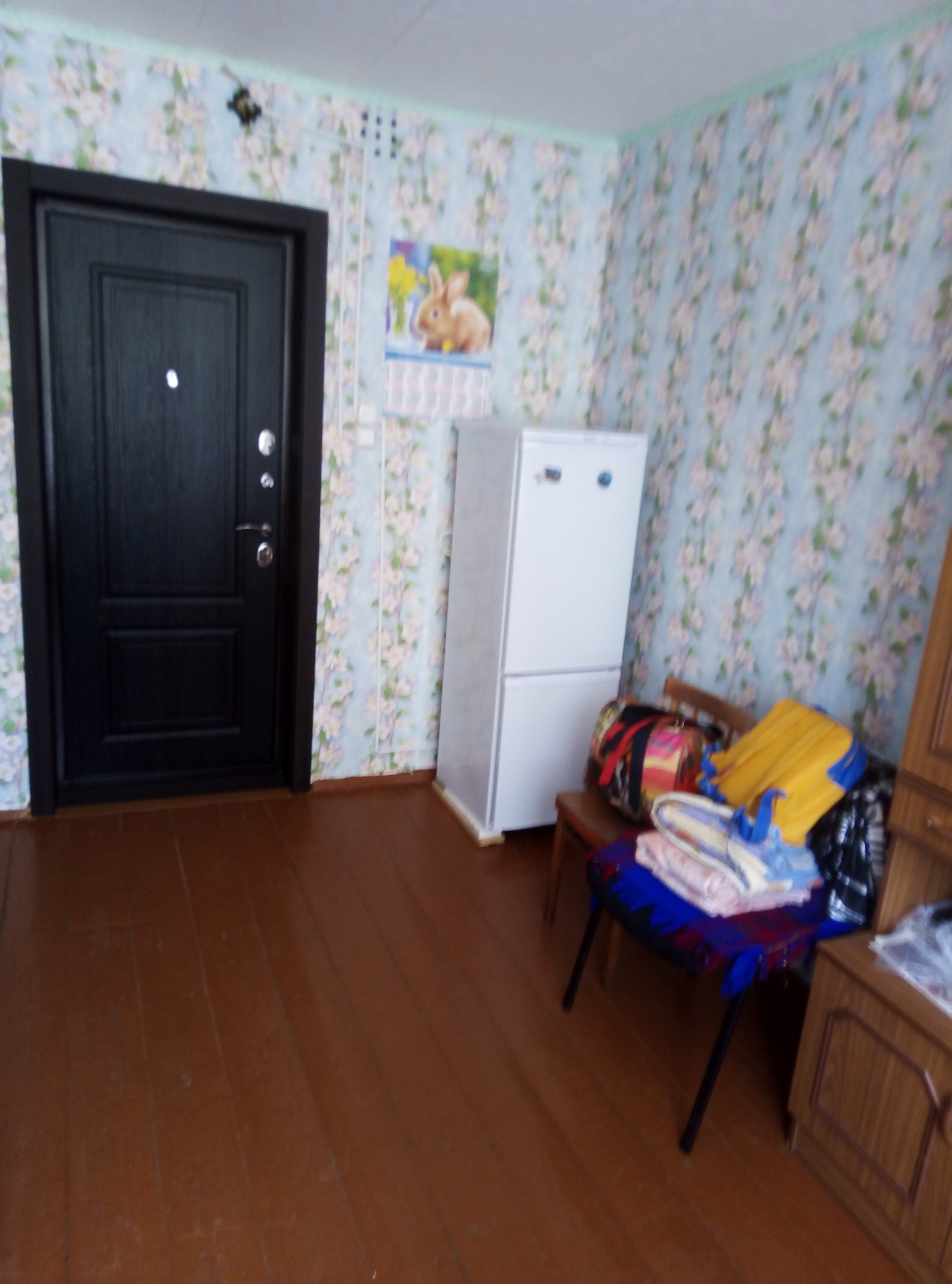 Новая входная дверь, окно ПВХ, полы деревянные, обои.