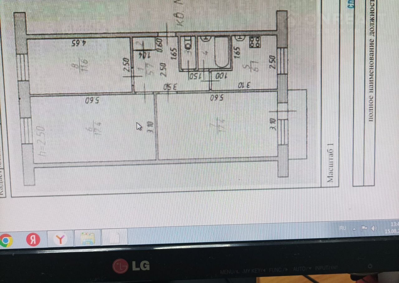 Жилая площадь 46.4 м2