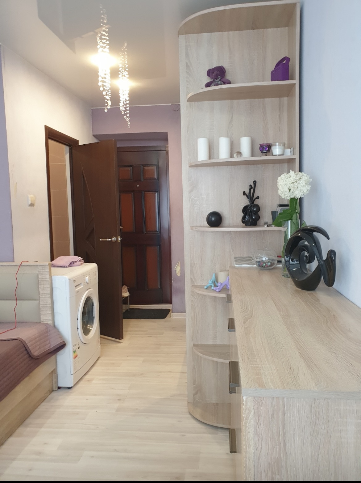 Продам комнату, светлая, теплая. Туалет и душ с поддоном внутри. Вся мебель остается. Так же есть стиральная машина Весо, индукционная плитка, мультиварка, электрогриль, микроволновка Shivaki, маленький холодильник Shivaki, гладильная доска, посуда на две персоны. Вся техника эксплуатировалась редко в течение 2-х лет.