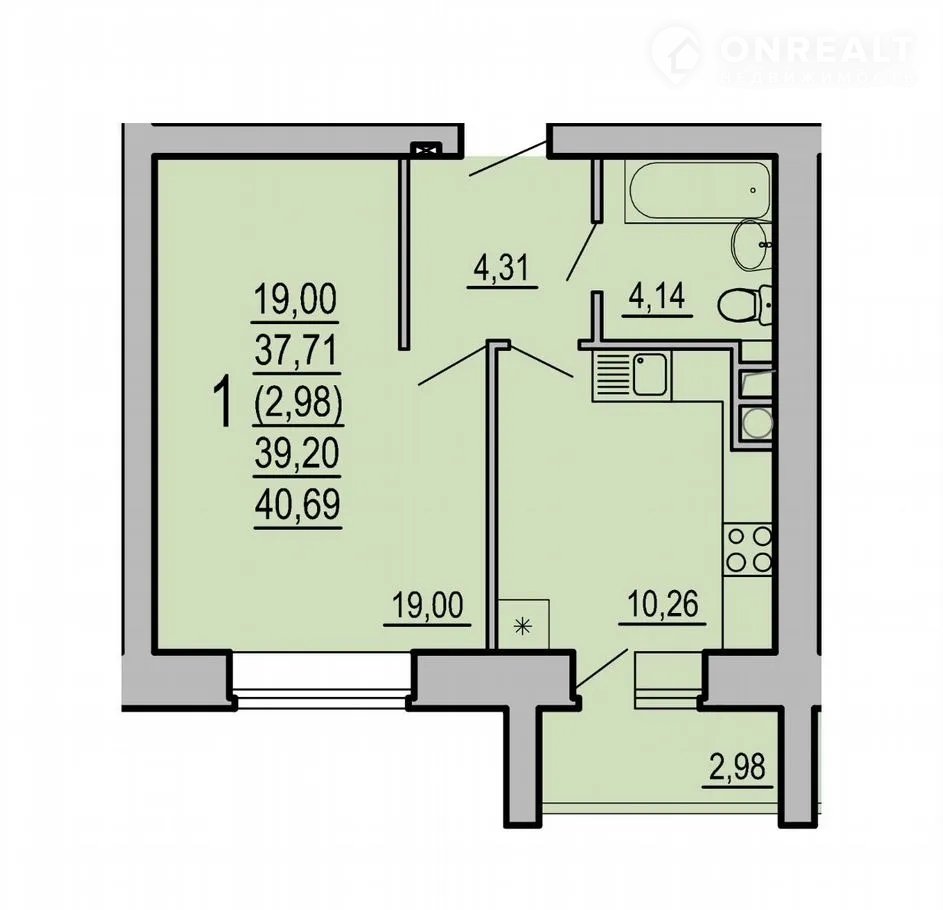 Общая площадь 40.7 м2