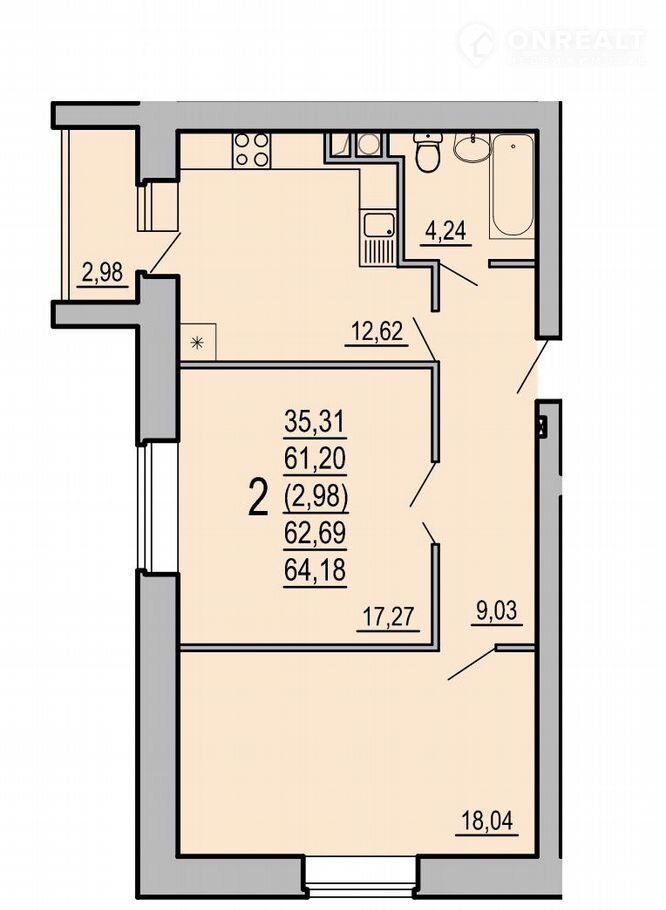 Общая площадь 64.2 м2