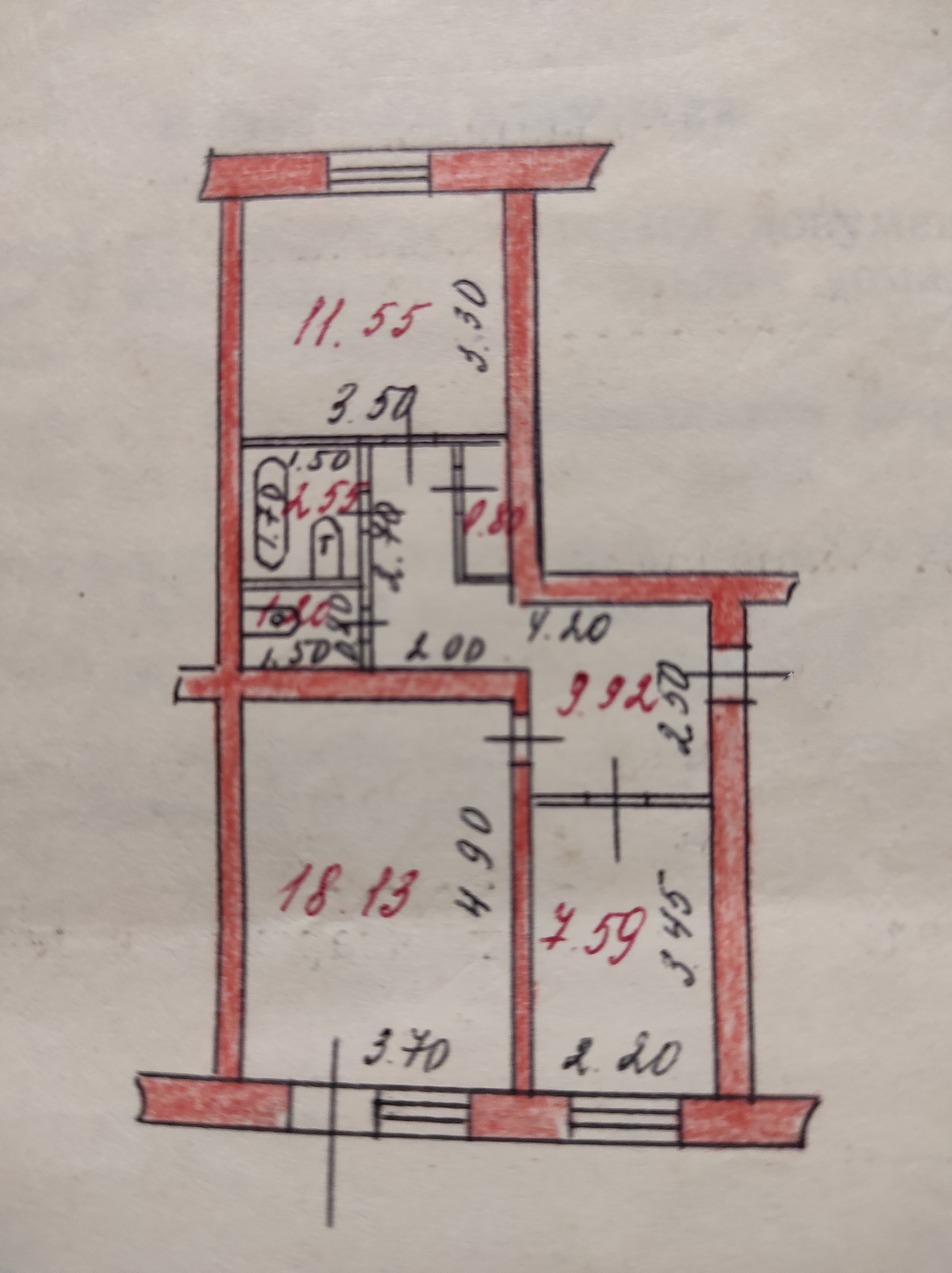Общая площадь 52 м2