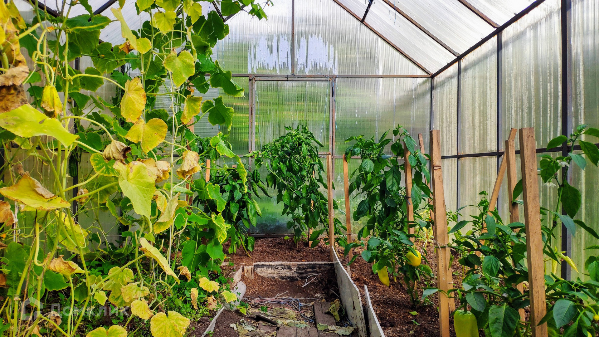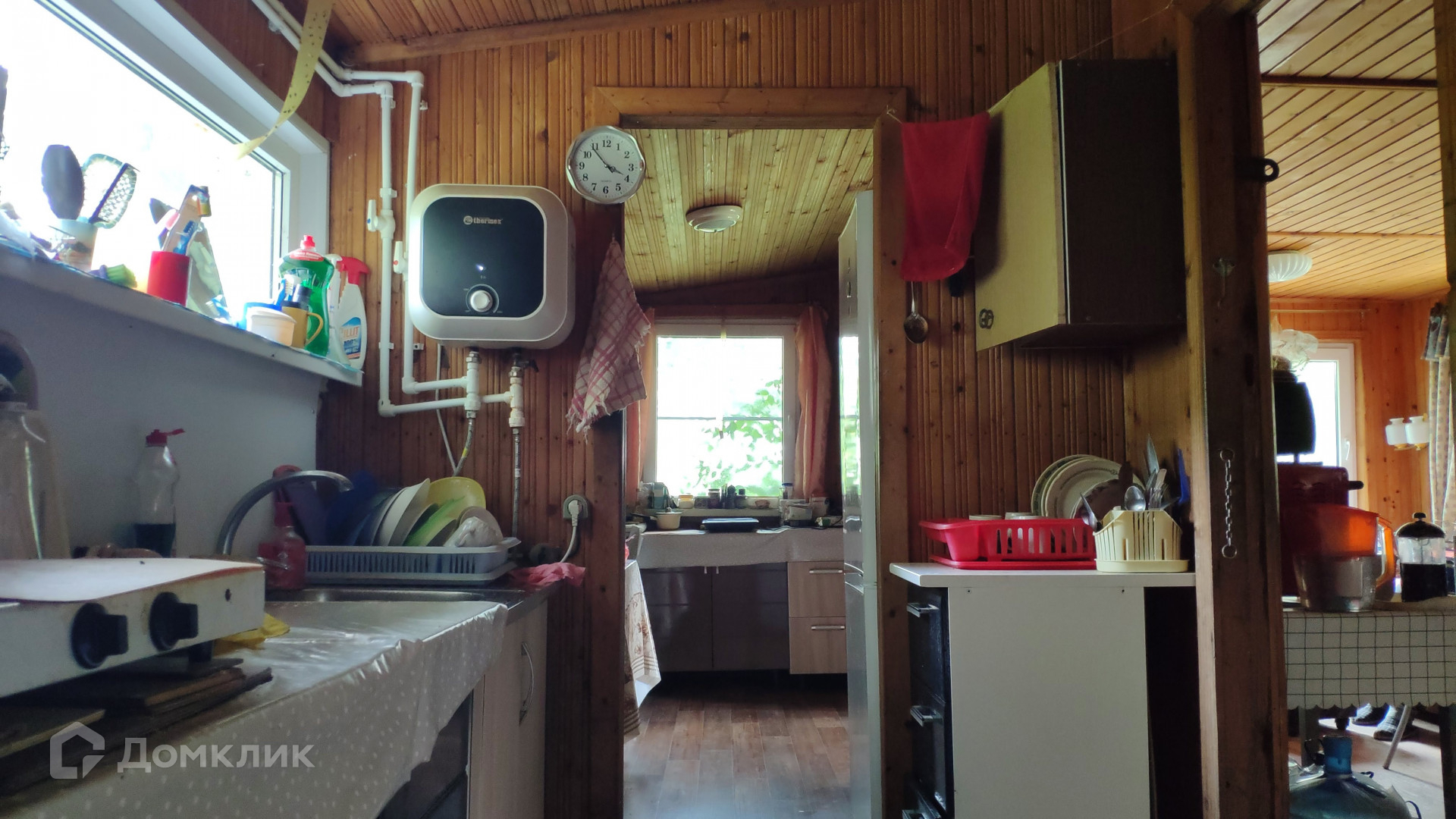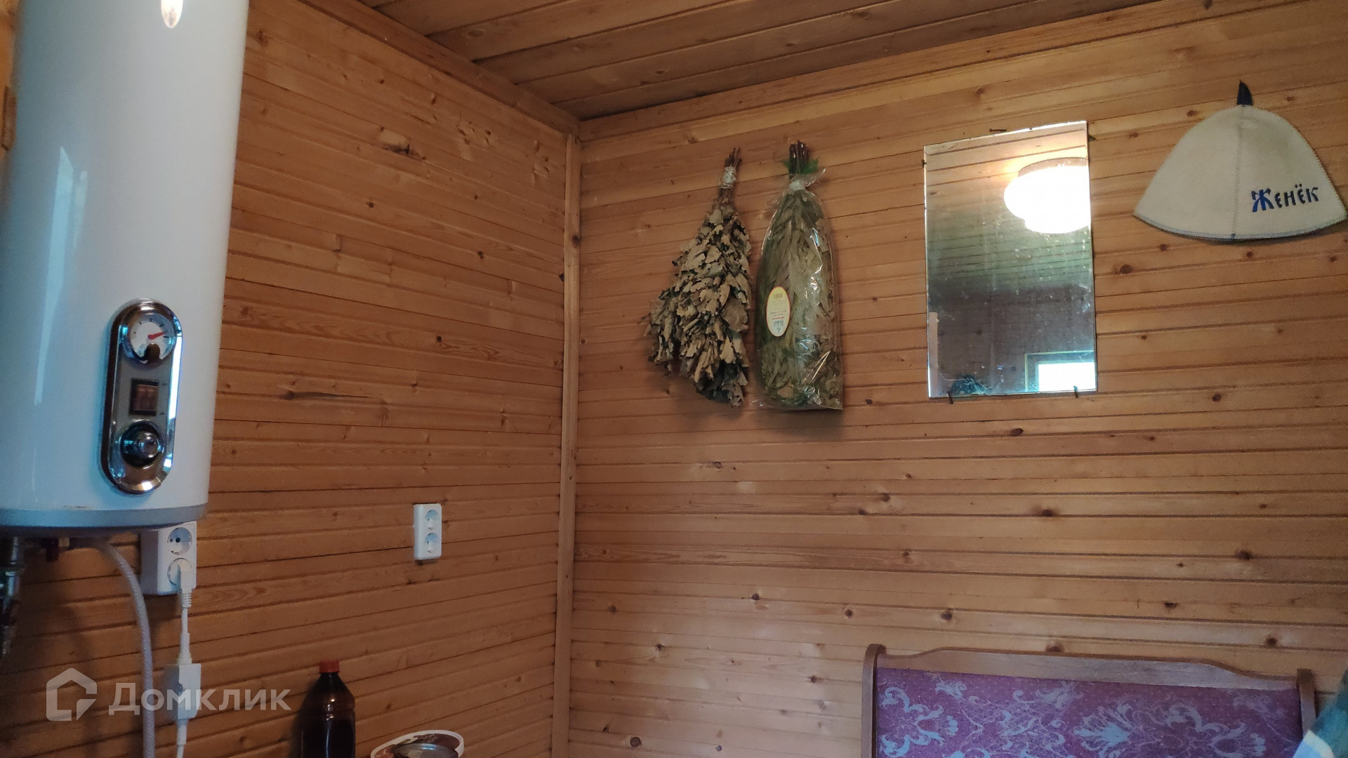 Домовладение состоит из бани и 2х домов (основного и гостевого). Основной дом площадью 112 м2 расположен в сердце участка. Отапливается дровяной печью и энергосберегающими конвекторами. Тут созданы все городские удобства – холодная вода из скважины (17м), горячая – из бойлера, есть туалет, канализация – септик. Электричество – 12 кВт. Рядом с домом построена баня, в которой предусмотрена душевая с горячей водой. Гостевой дом с одной спальней и верандой расположен в дальней части участка. Он утеплен и отапливается конвекторами.