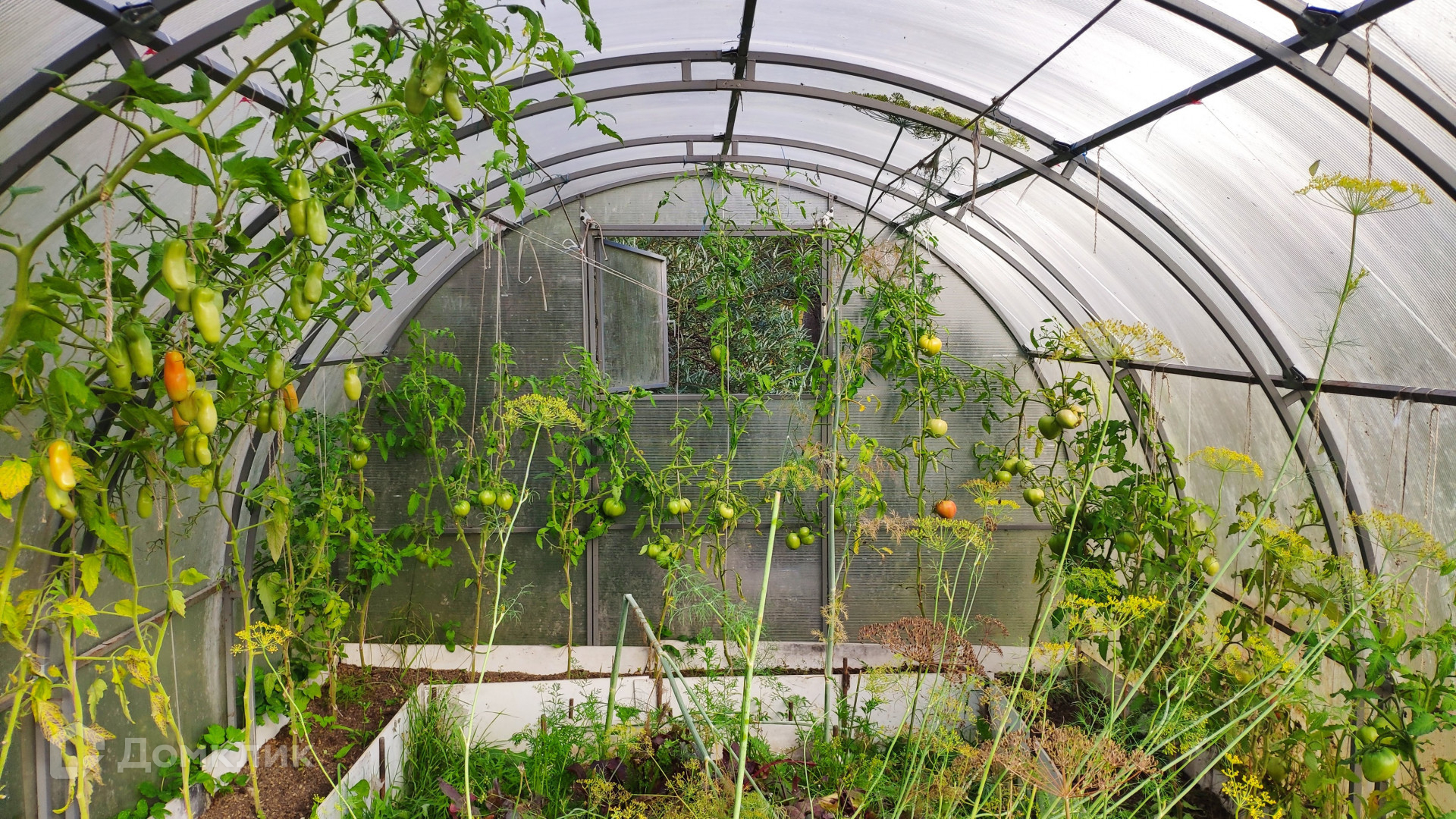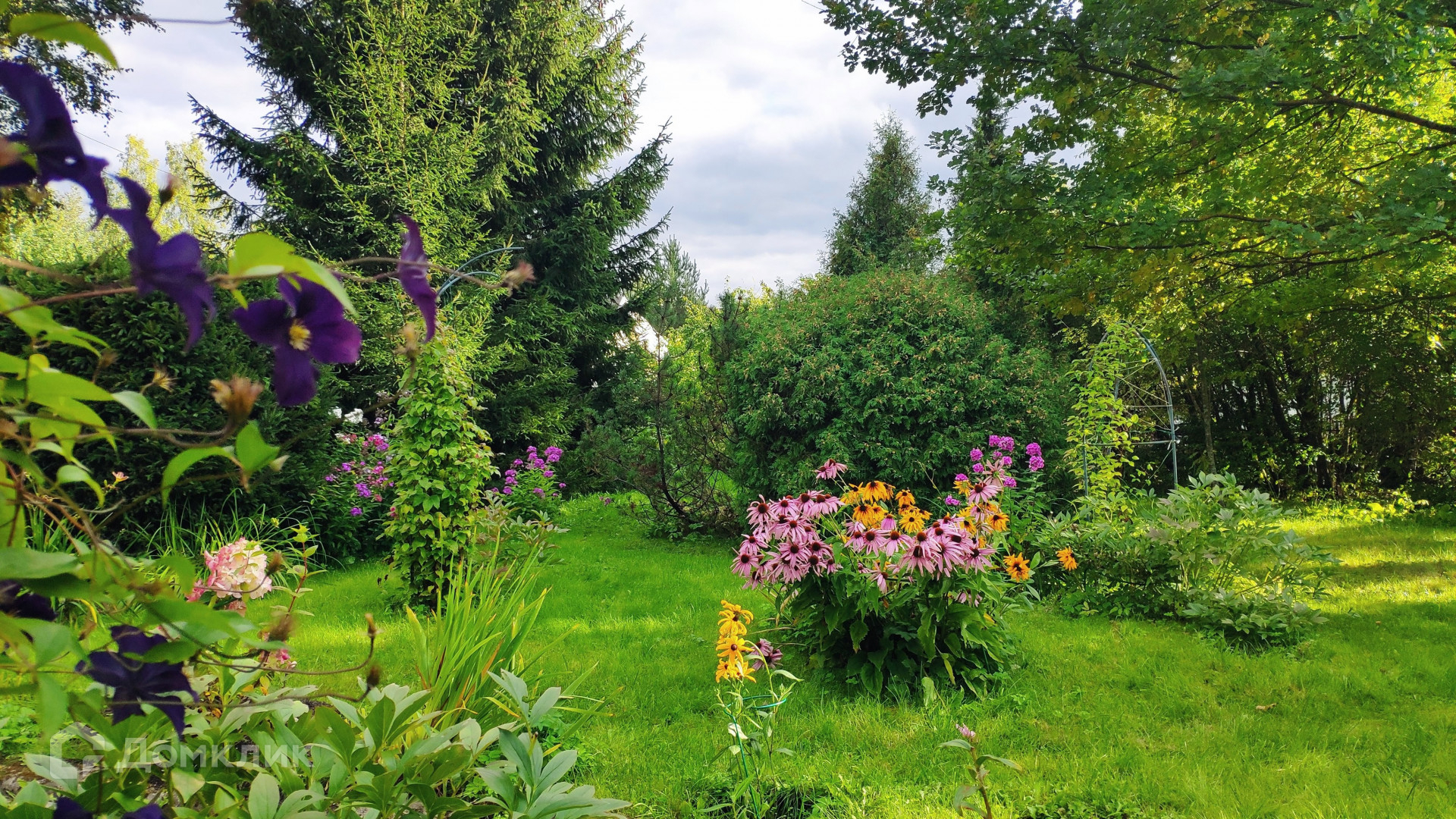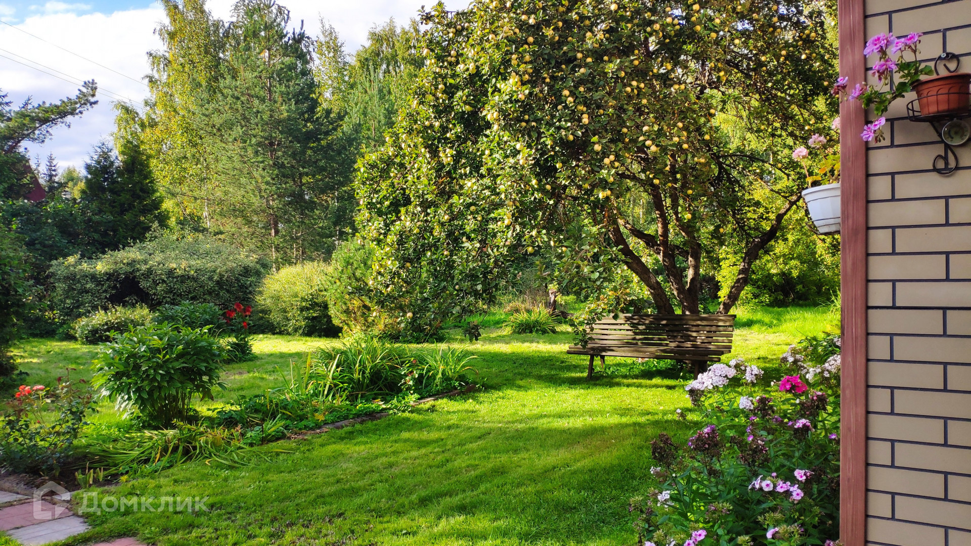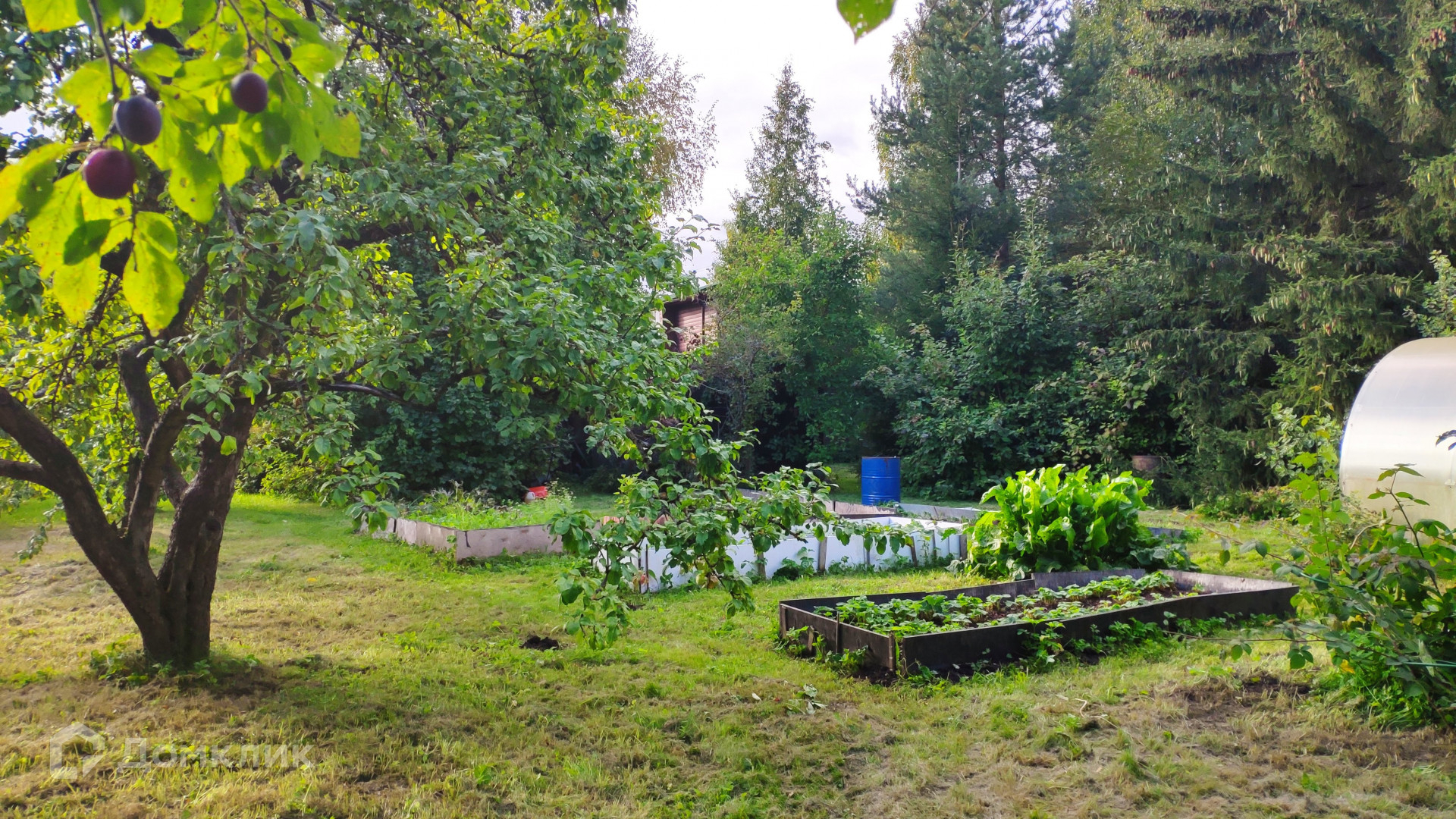 Особая ценность этого домовладения – земельный участок площадью 31,72 с. Он разбит на несколько красиво благоустроенных ландшафтных зон. Создается впечатление, что вы попали в парк. Тут вас ждут тенистые дорожки среди пышных хвойных и лиственных деревьев, два пруда с цветущими по краям ирисами и густыми зарослями можжевельника, фруктово-ягодный сад, богатый на урожай. Для выращивания овощей на участке предусмотрены грядки и 2 теплицы, а парадная зона перед домом украшена цветущими весь сезон клумбами с многолетниками. Вся эта красота с любовью выращена своими руками за многие годы владения. Участок огорожен, парковка для автомобиля вымощена плиткой.