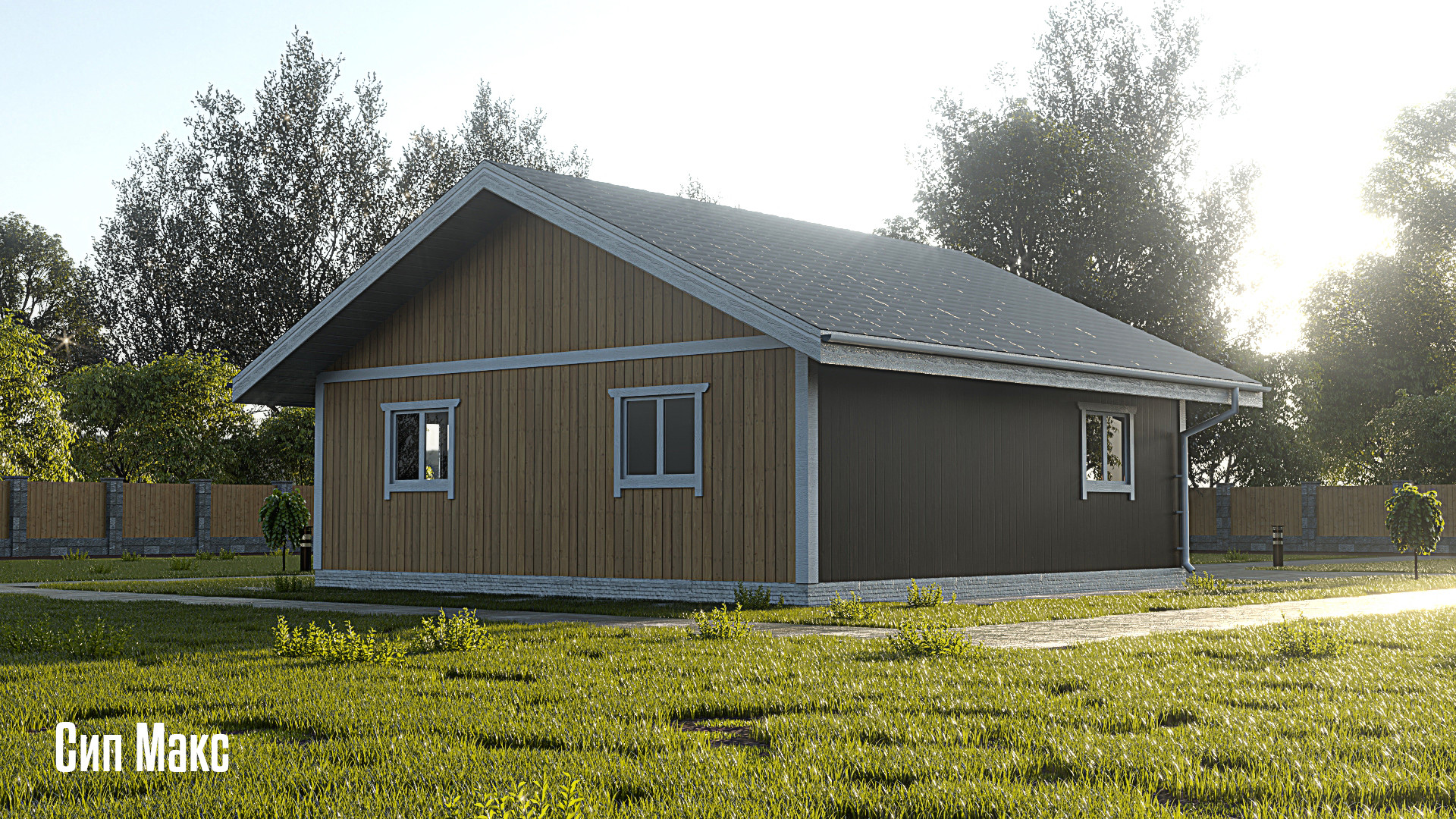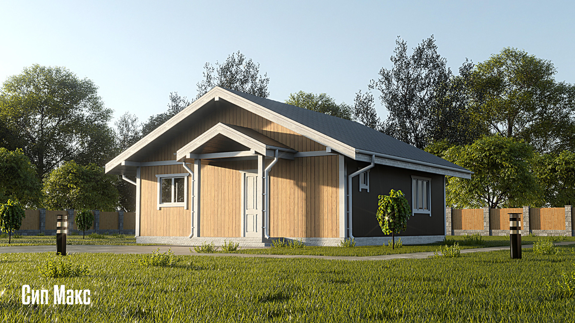 Проект " Евгения " площадью 74м2, указана цена дома "ПОД КЛЮЧ" из сип панели (отделка стен внутри помещений под косметический ремонт , полная фасадная отделка , установка водосточной системы , разводка водоснабжения ,отопление ,электричество, двери/окна) *септик и скважина оплачиваются отдельно.