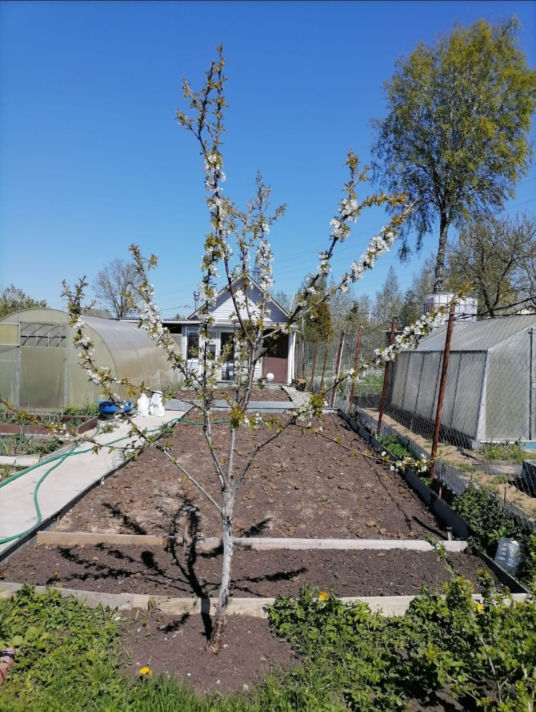 ПРОДАМ ДАЧУ в СНТ "Солнечный луч" в черте г.Гатчина (пл. Татьянино 15 мин.) На участке два дома-летний небольшой 12 м. кв. и отапливаемый печью-камином 30 кв.м.+пристроена банька с душевой. Электричество 5 кВт. Вода заведена в дом со скажины. Кубик для полива. Участок 7 соток, огорожен сеткой+профлистом, ровный, сухой, полностью разработан, имеет вытянутую правильную форму.  Имеются плодовые деревья и кустарники: яблони, земляника, малина, крыжовник, красная и чёрная смородина. Участок утопает цветах и зелени , очень ухоженный. Две хорошие теплицы. Новые добротные грядки из ламинированной фанеры, остаётся много садоводство инвентаря.