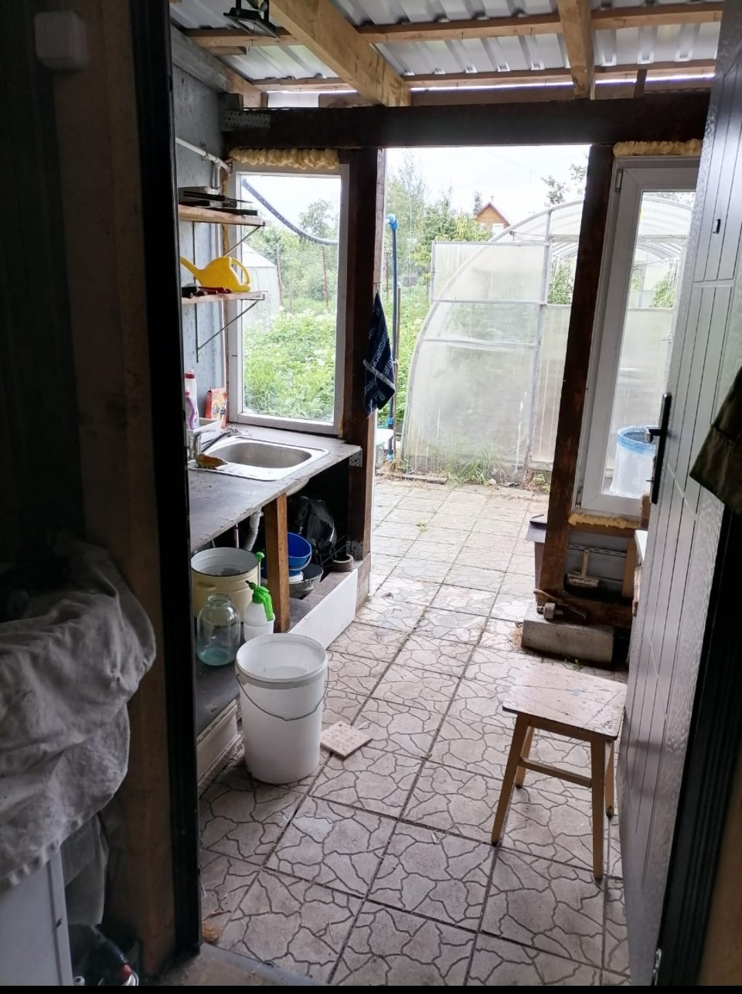 В доме терраса, кухня 9 кв.м., веранда 9 кв.м., комната отдыха 12 м. кв.  Душ в бане.  Отопление - камин. Закрытое, небольшое, обжитое садоводство (всего 44 участка), все друг друга знают. Зимой обслуживается, снег убирается. Отличная транспортная доступность в любое время года. До центра Гатчины (магазины, инфраструктура).От Питера 50 минут на электричке по Варшавской ветке. Документы в полном порядке. Под ипотеку не подходит.