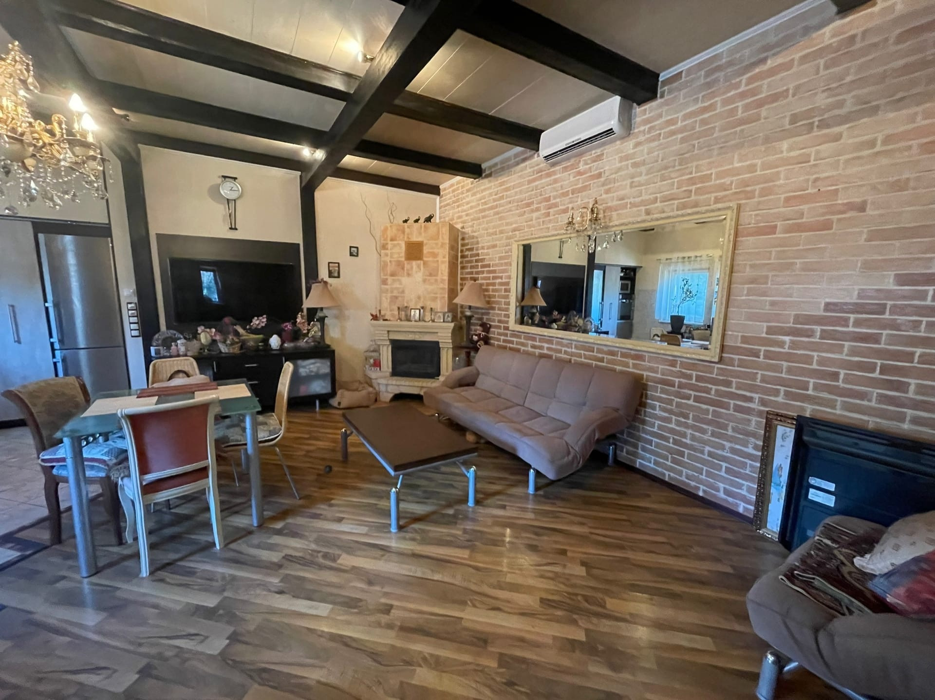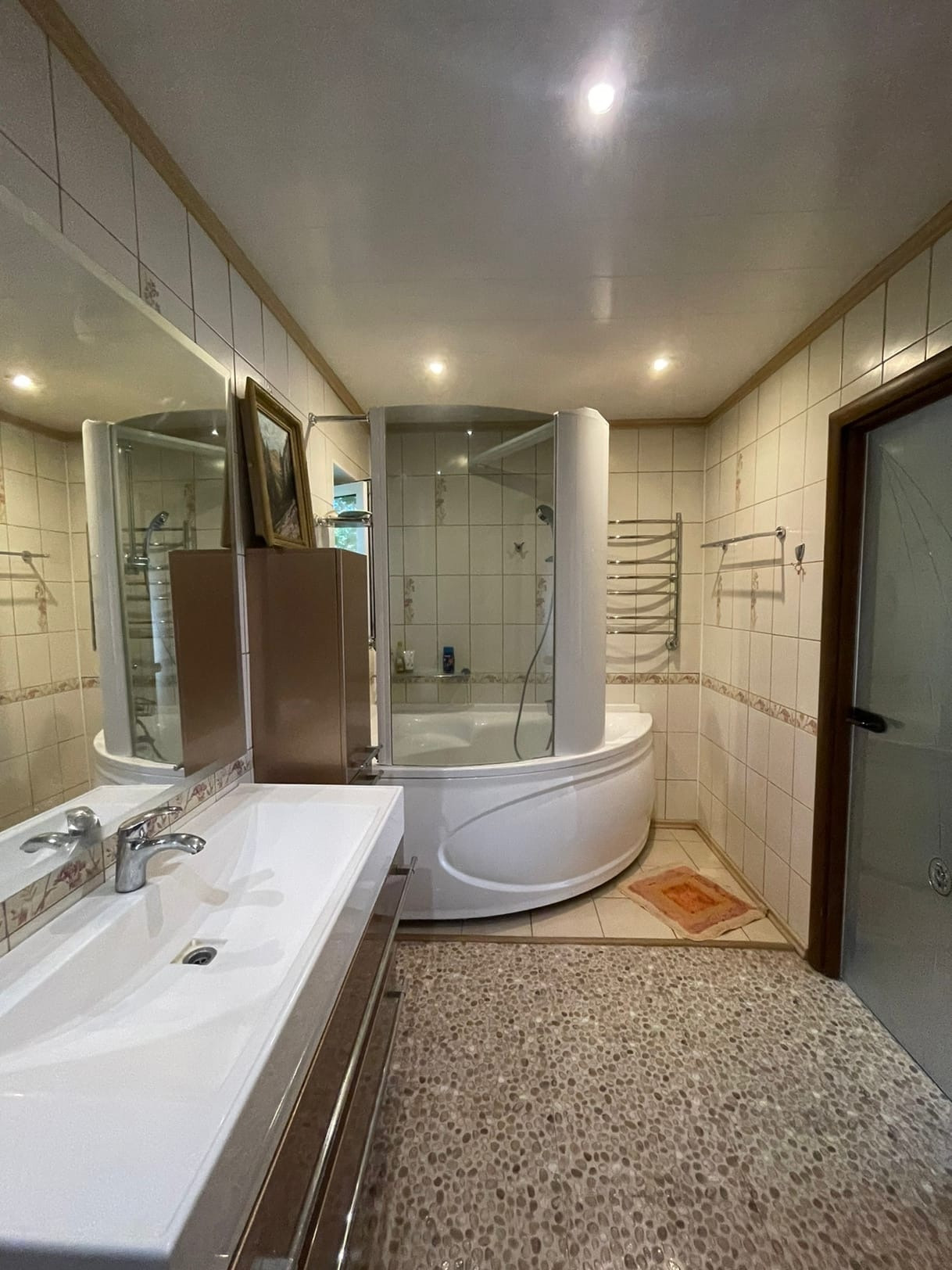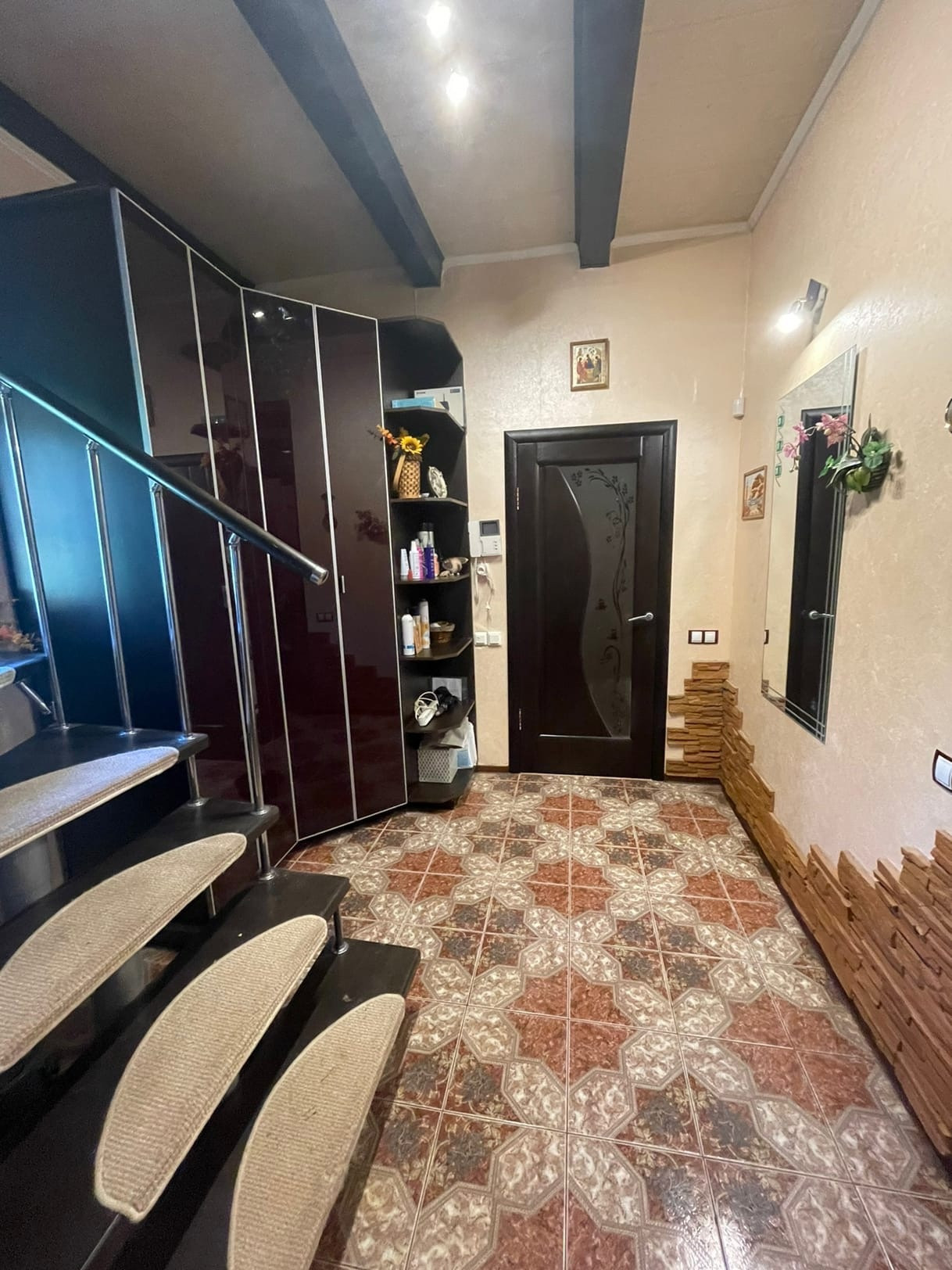 На участке расположен дом (по документам квартира, назначение - жилое) - 102,5 кв.м. ЦЕНТРАЛЬНОЕ ВОДОСНАБЖЕНИЕ, ОТОПЛЕНИЕ И КАНАЛИЗАЦИЯ. Газ баллонный. На первом этаже: большая кухня совмещенная с гостиной 32,1 кв.м. с камином; коридор 10,1 кв.м. с лестницей на второй этаж; совмещенный санузел с душевой кабиной. Высокие потолки. На мансардном этаже 2 комнаты: 9,7 и 20,5 кв.м., соединенный вместительным коридором 8,8, в котором установлен большой угловой шкаф и комод. Большая комната-смарт-спальня с выходом в вместительный гардероб 3,6 кв.м. и санузел 8,9 кв.м. с огромной ванной и ЭЛЕКТРИЧЕСКОЙ САУНОЙ. В доме сделан качественный, продуманный, современный ремонт. На первом этаже установлены ТЕПЛЫЕ ПОЛЫ. Есть 2 кондиционера на первом и втором этаже, что актуально в летнее время года. В ванных комнатах выполнен ремонт кафелем. В доме в ПОДАРОК остается кухня с барной стойкой, шкафы в коридорах на первом и втором этажах, кровать в спальне.