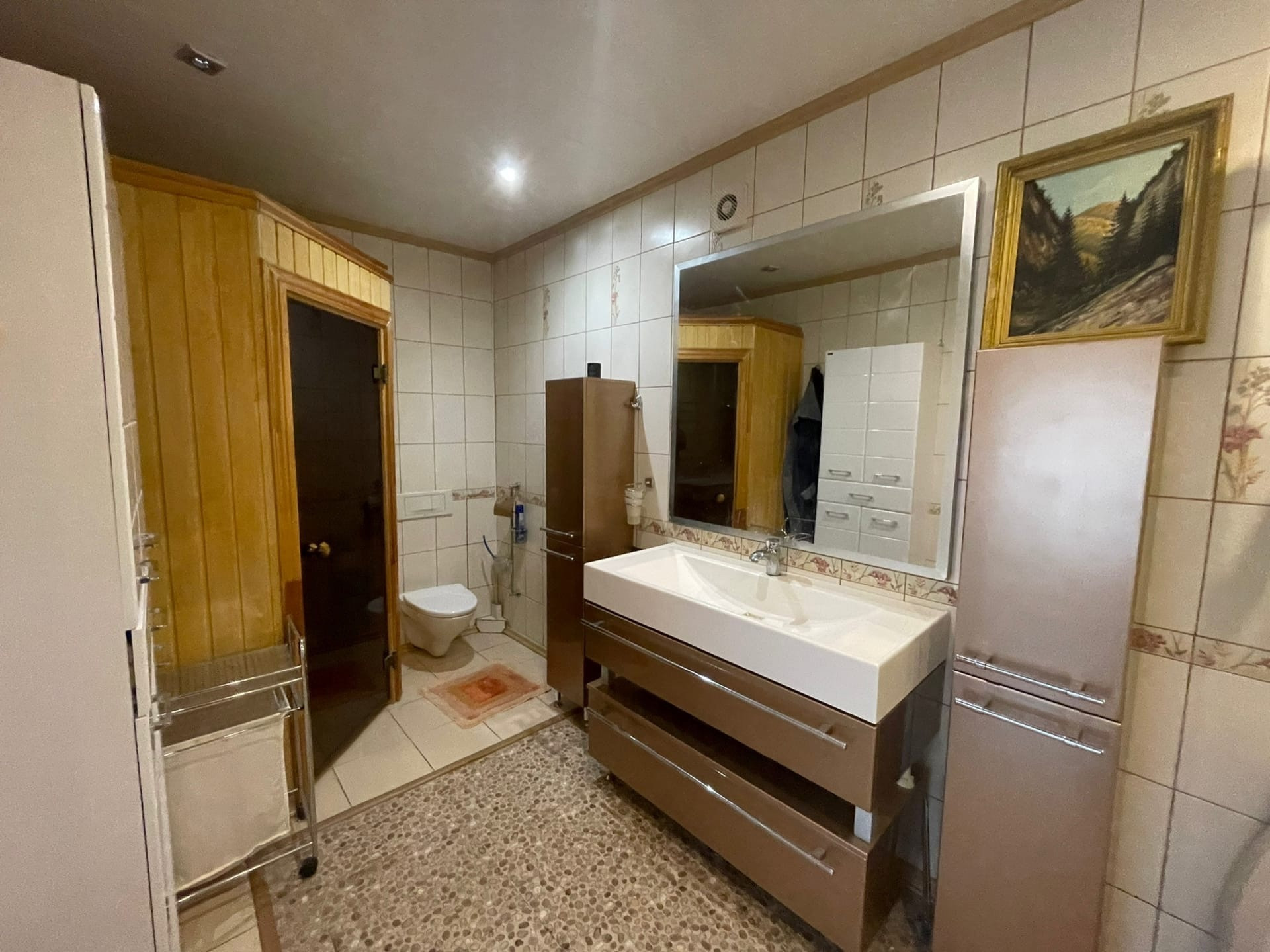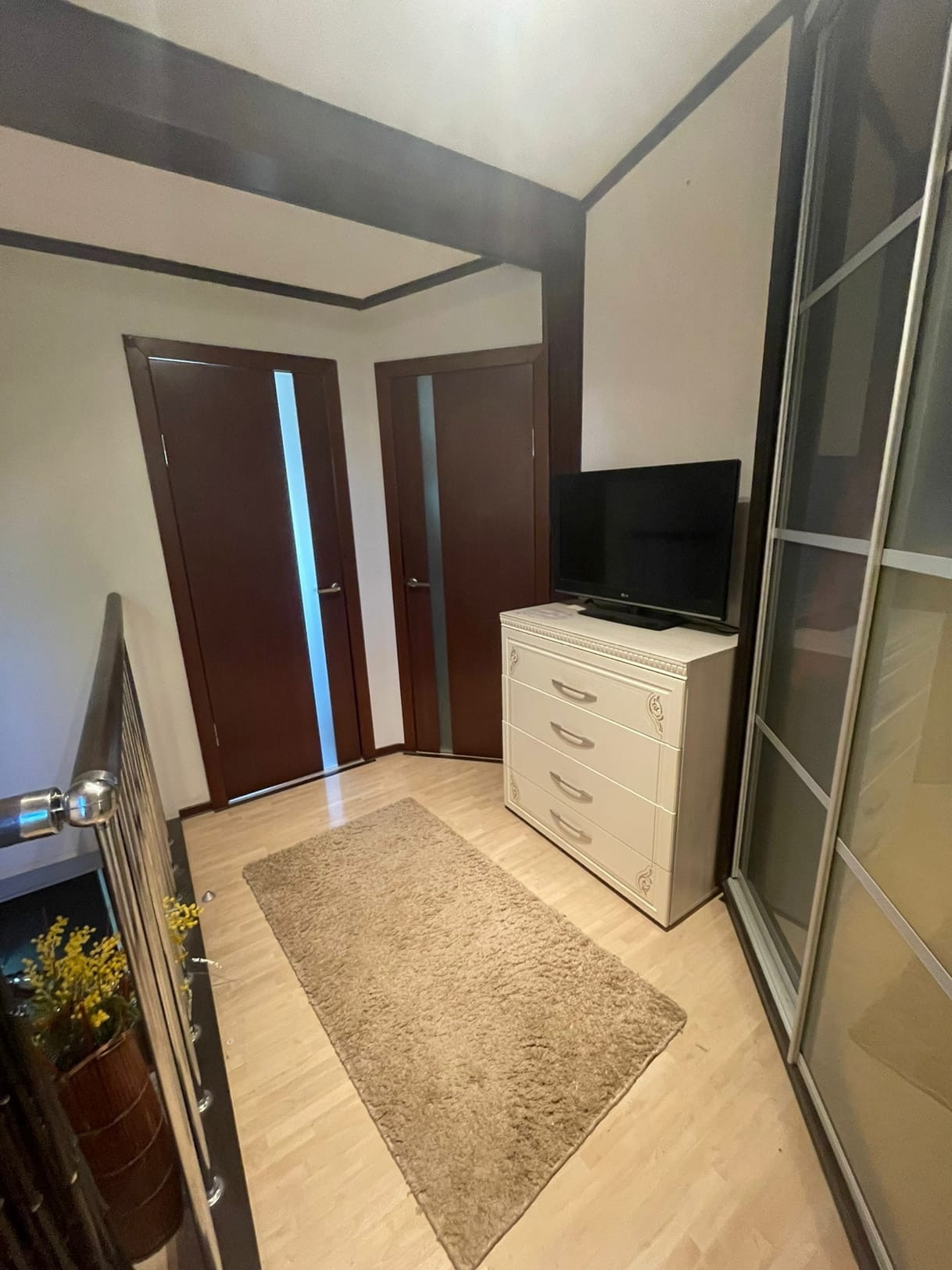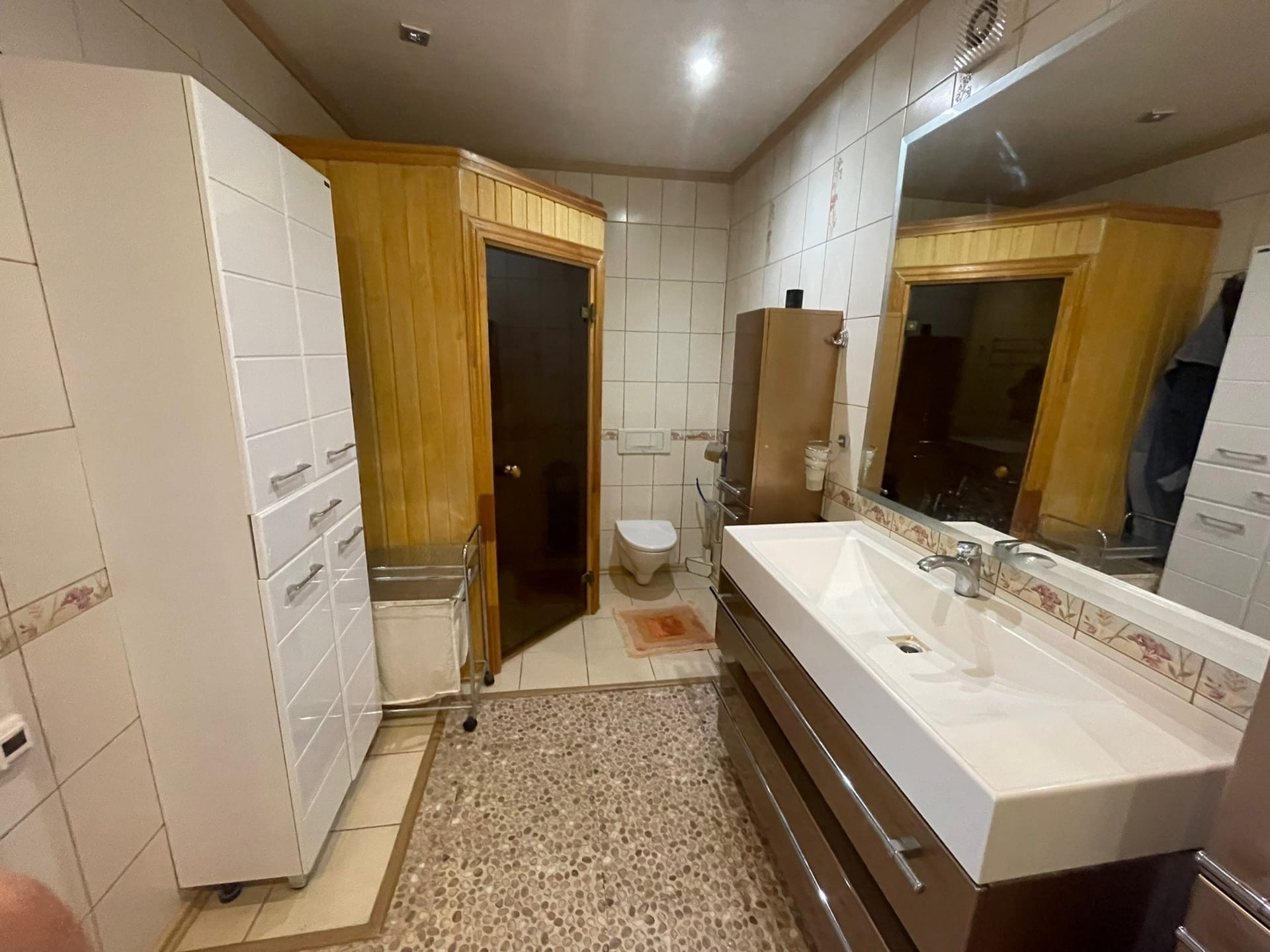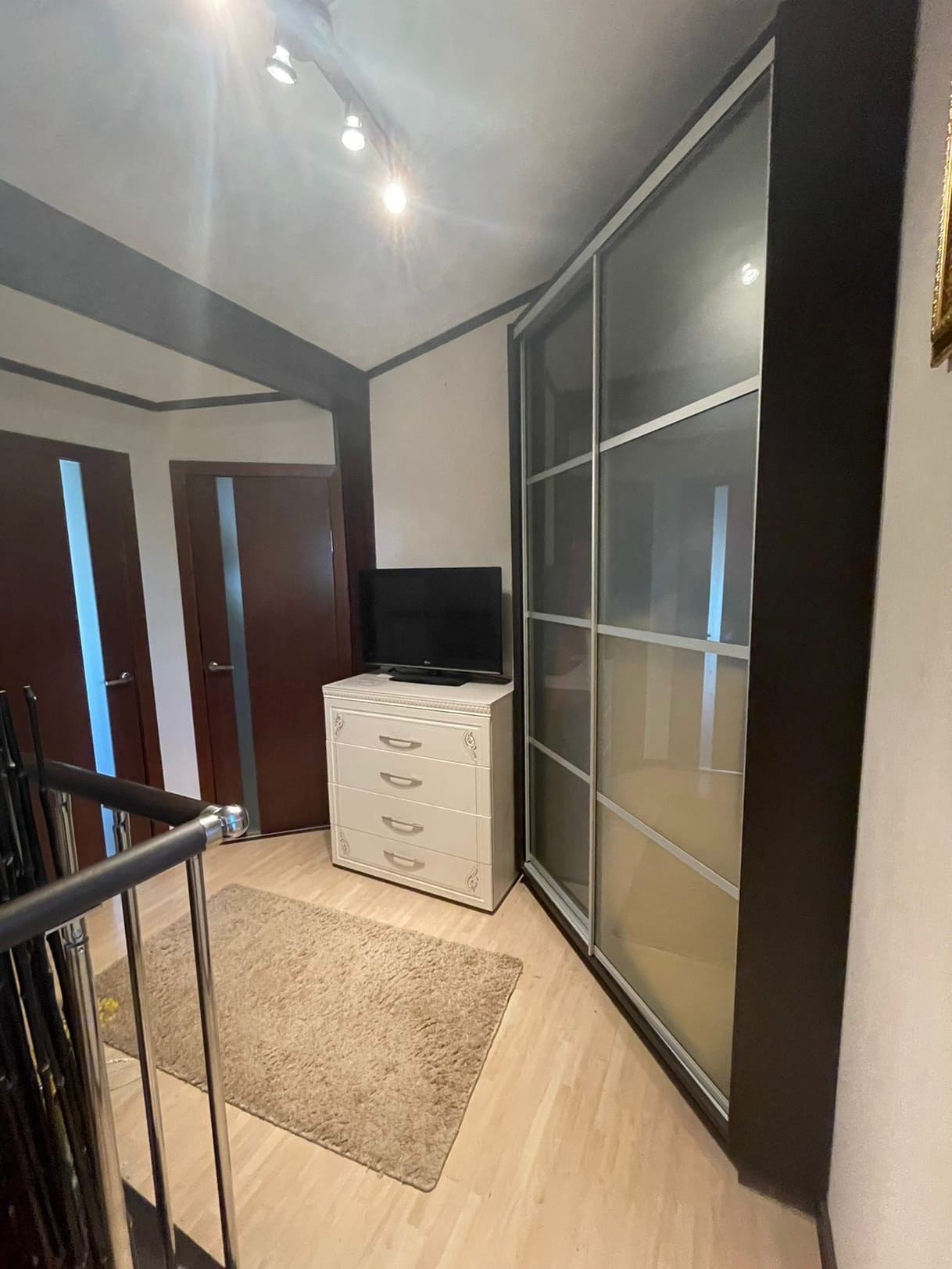 На участке расположен дом (по документам квартира, назначение - жилое) - 102,5 кв.м. ЦЕНТРАЛЬНОЕ ВОДОСНАБЖЕНИЕ, ОТОПЛЕНИЕ И КАНАЛИЗАЦИЯ. Газ баллонный. На первом этаже: большая кухня совмещенная с гостиной 32,1 кв.м. с камином; коридор 10,1 кв.м. с лестницей на второй этаж; совмещенный санузел с душевой кабиной. Высокие потолки. На мансардном этаже 2 комнаты: 9,7 и 20,5 кв.м., соединенный вместительным коридором 8,8, в котором установлен большой угловой шкаф и комод. Большая комната-смарт-спальня с выходом в вместительный гардероб 3,6 кв.м. и санузел 8,9 кв.м. с огромной ванной и ЭЛЕКТРИЧЕСКОЙ САУНОЙ. В доме сделан качественный, продуманный, современный ремонт. На первом этаже установлены ТЕПЛЫЕ ПОЛЫ. Есть 2 кондиционера на первом и втором этаже, что актуально в летнее время года. В ванных комнатах выполнен ремонт кафелем. В доме в ПОДАРОК остается кухня с барной стойкой, шкафы в коридорах на первом и втором этажах, кровать в спальне.
