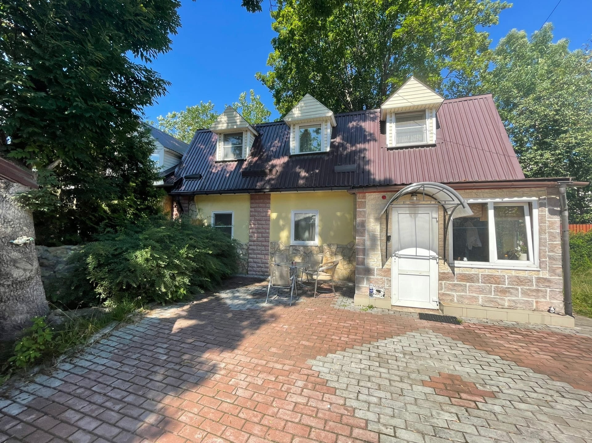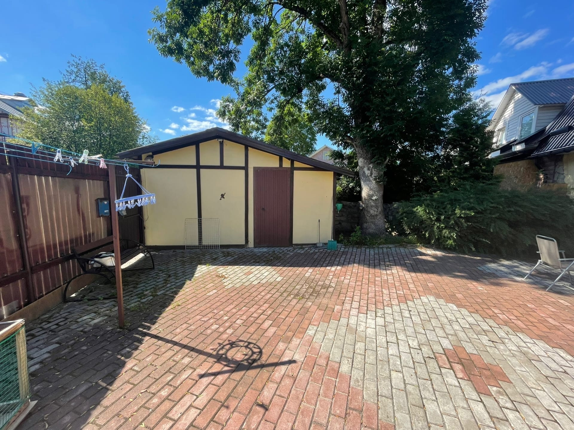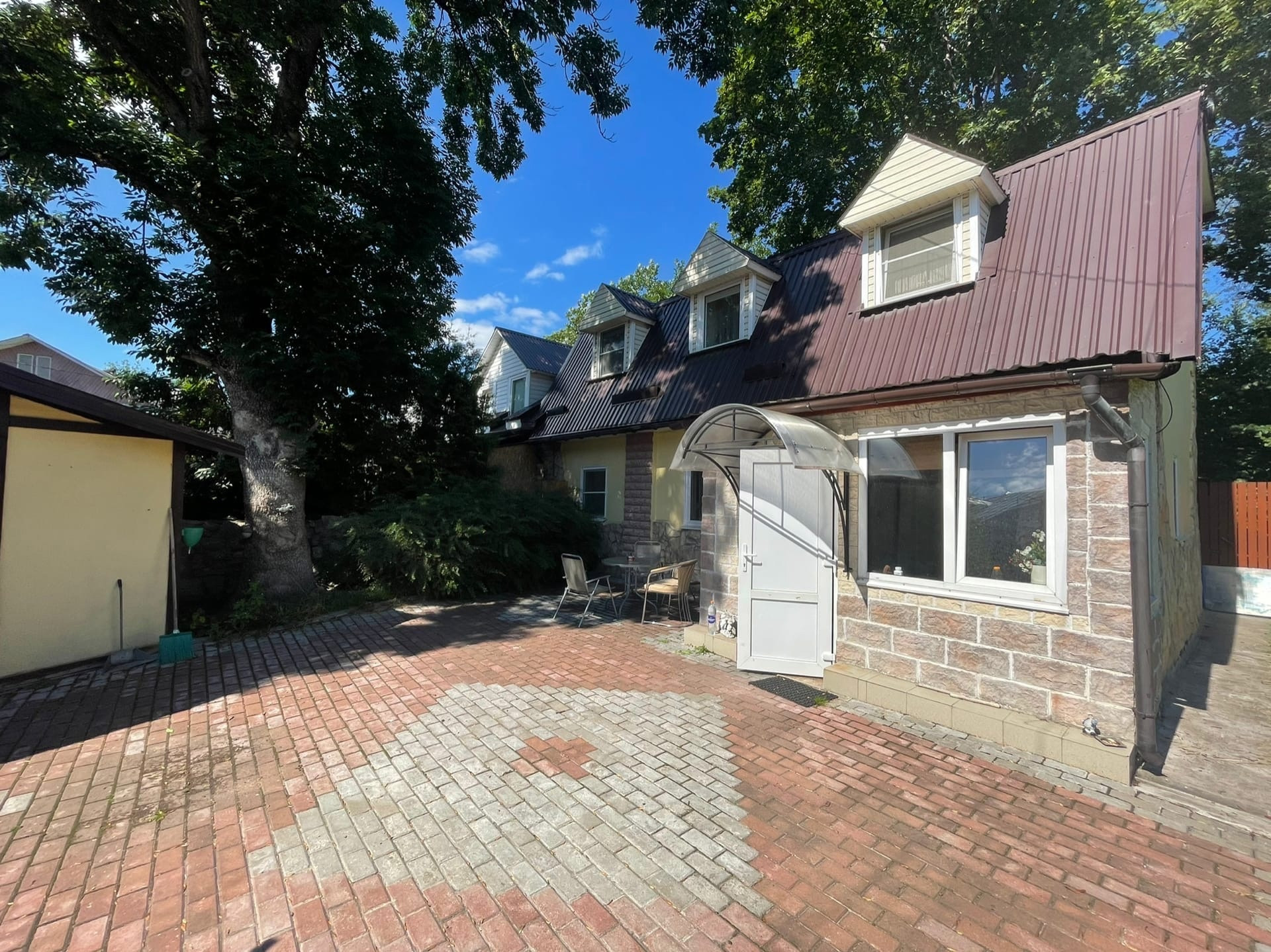 Подход к дому по тротуарной плитке. Около дома есть приятная зона в тишине и теньке, где можно оформить зону барбекю.