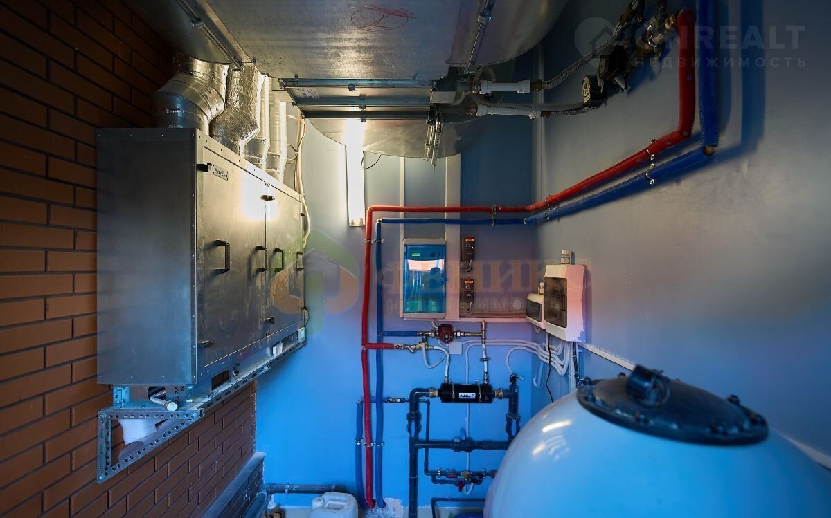 Приточно-вытяжная система вентиляции  - отдельно на жилое помещение и отдельно на бассейн. Воздух всегда чистый и с возможностью подогрева . Там же расположена система очистки бассейна как в фитнес клубах .