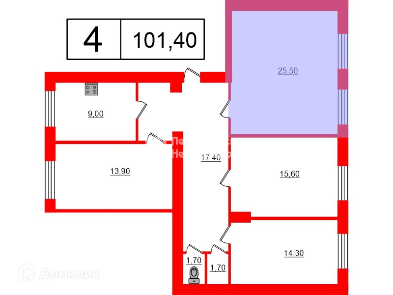 Общая площадь 101.4 м2