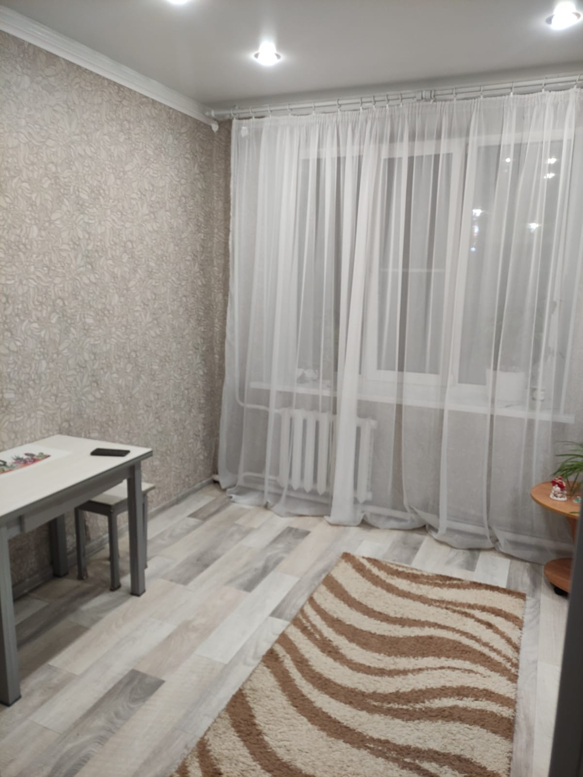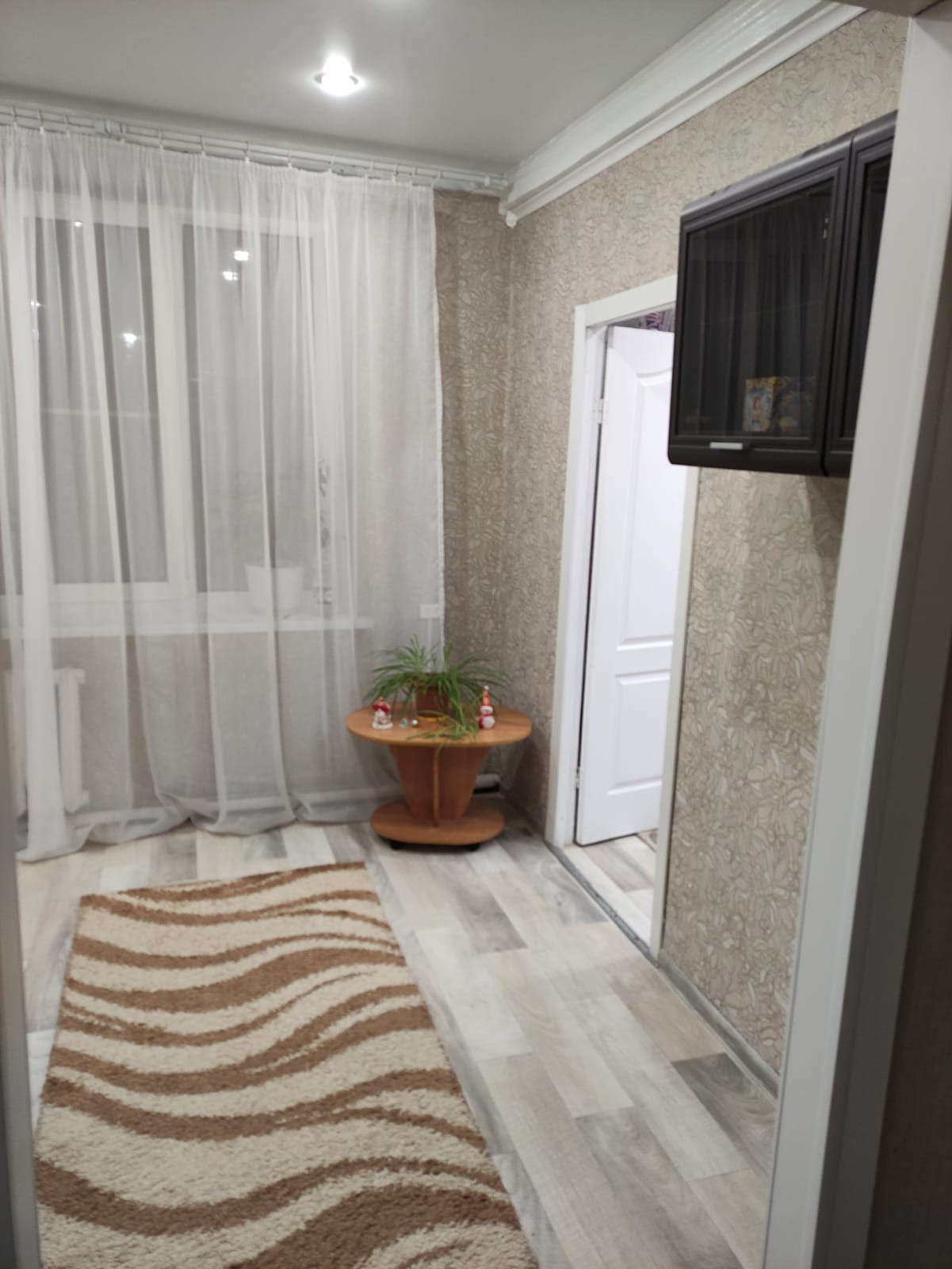 В комнатах сделан свежий ремонт, установлены стеклопакеты и натяжные потолки.