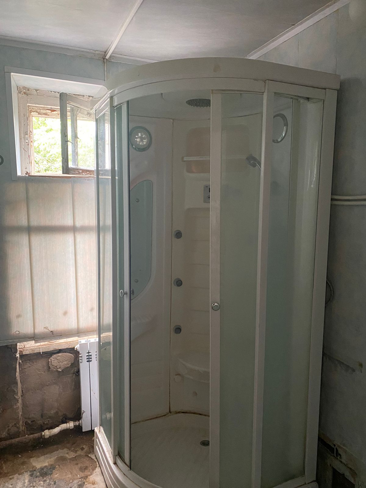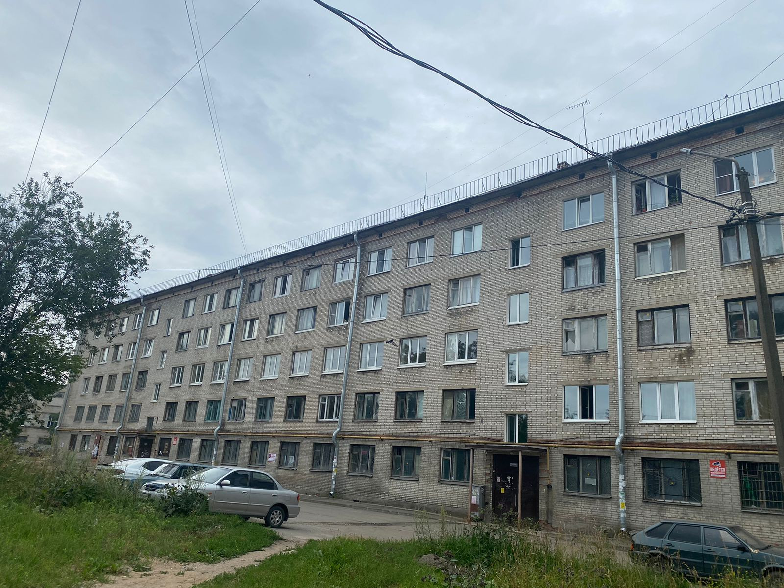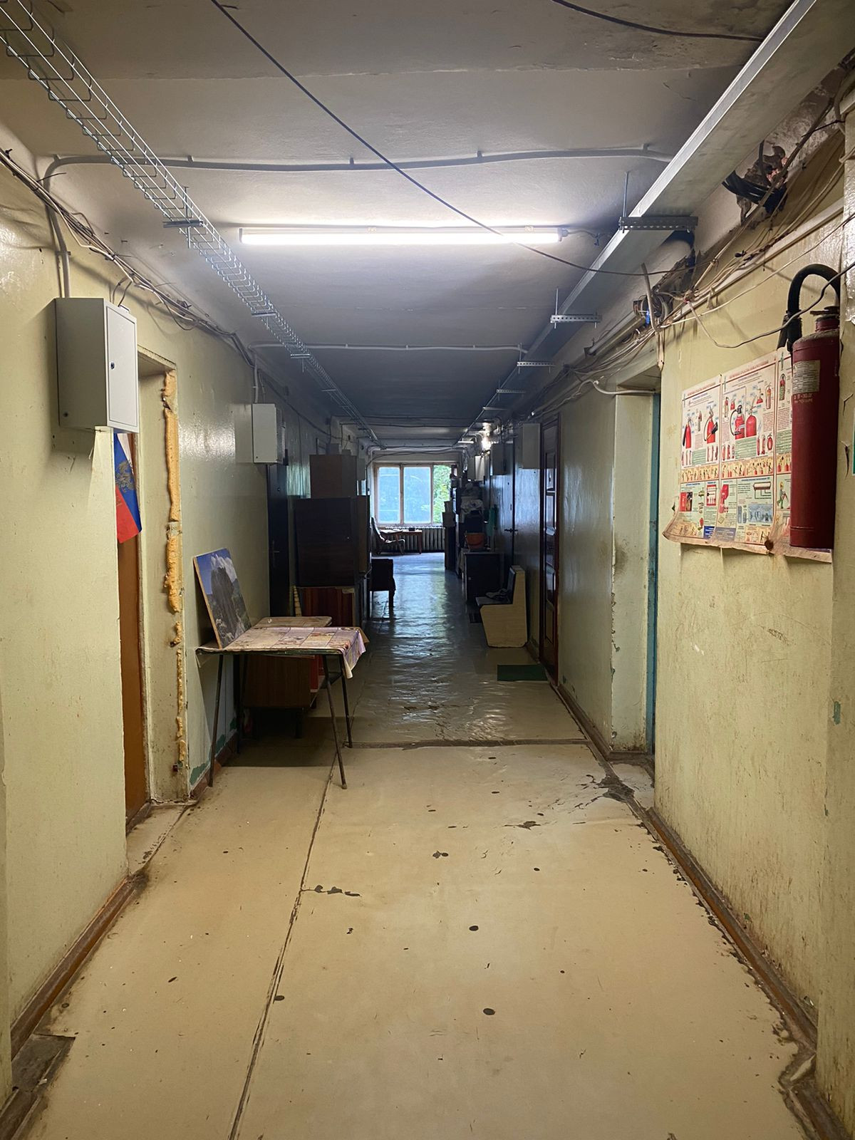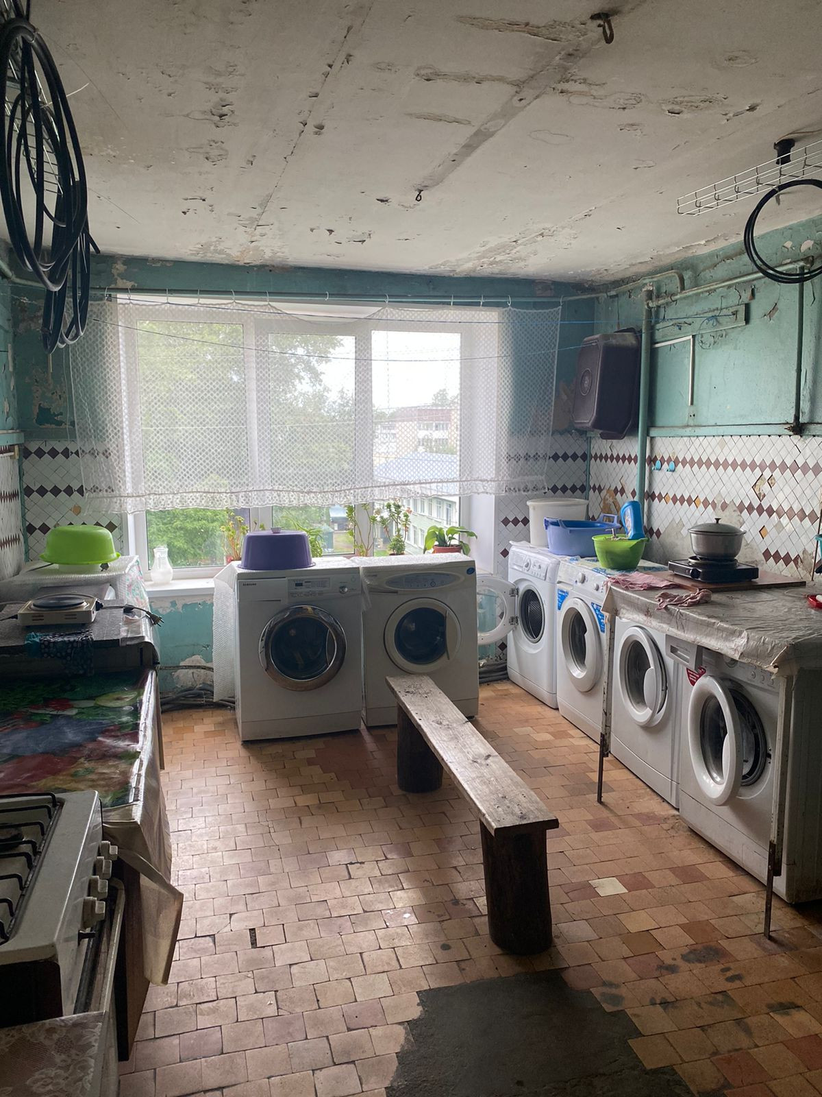 На общей кухне есть место для установки электрической плиты (газа в доме нет!), стола и стиральной машины.