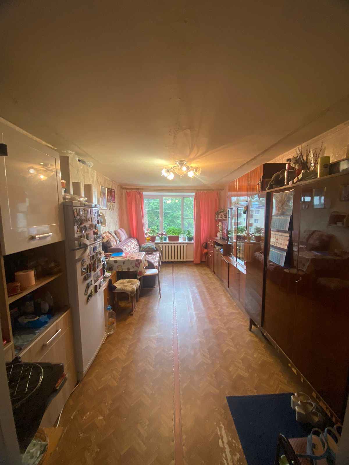 Возможно рассмотреть одновременно выкуп двух комнат. Комнаты находятся через стенку. Одна из комнат граничит с кухней.