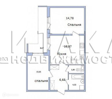 Общая площадь 56.6 м2