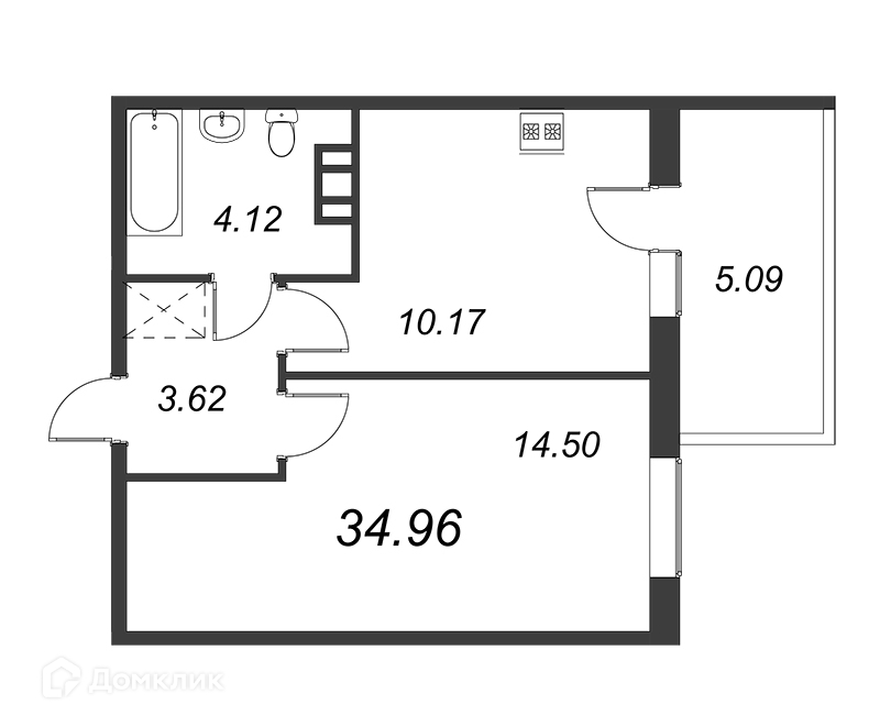 Общая площадь 35.5 м2