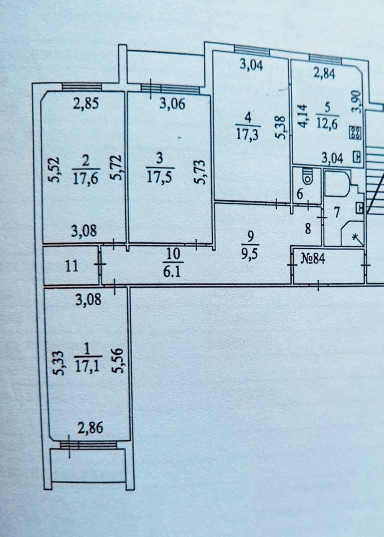 Жилая площадь 55.5 м2