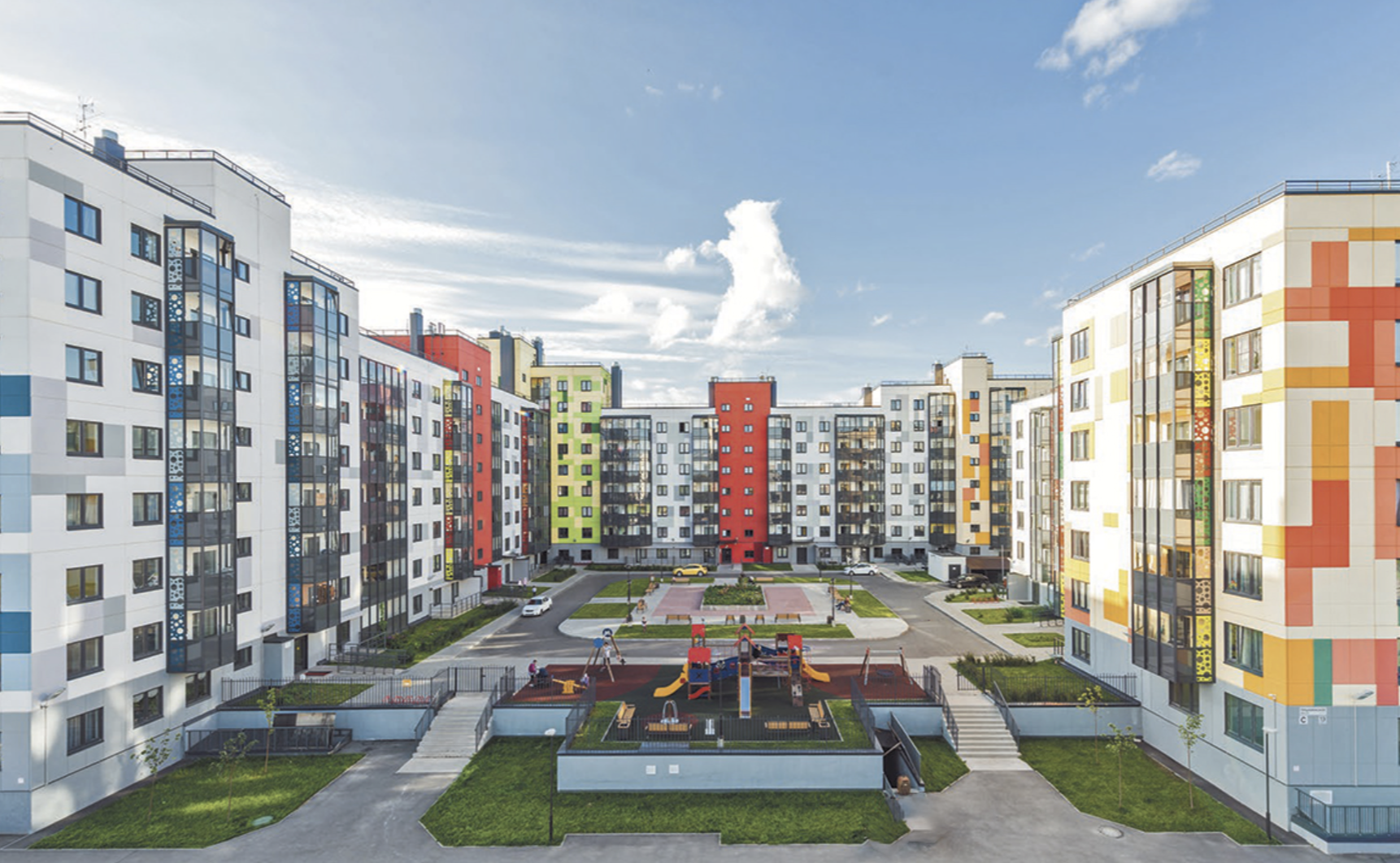 В состав объекта входят QR-библиотека, а также кафе, рестораны и встроенные помещения в доме являются продолжением прогулочной зоны с отсутствием лестниц. В секциях предусмотрены места для хранения колясок и велосипедов. Во дворе свободном от машин, установлены детские и спортивные площадки с безопасным покрытием. Придомовая территория оформлена по-авторскому дизайн-проекту и благоустроена ландшафтным дизайном. На первых этажах Очереди №4 предусмотрены коммерческие помещения. На территории комплекса есть бесплатный Wi-Fi и ведется видеонаблюдение.